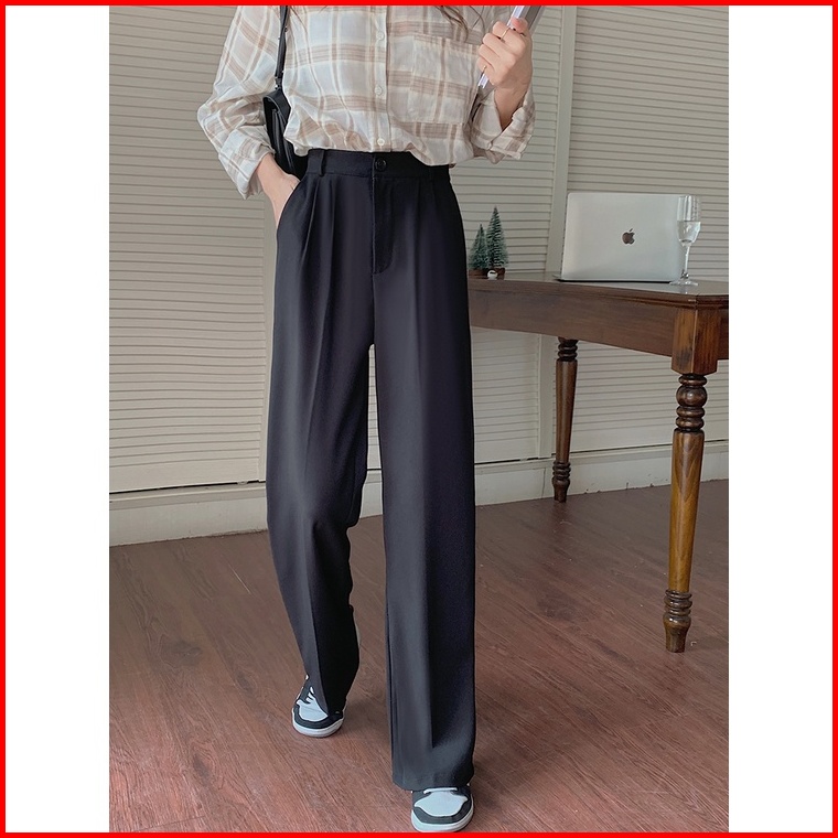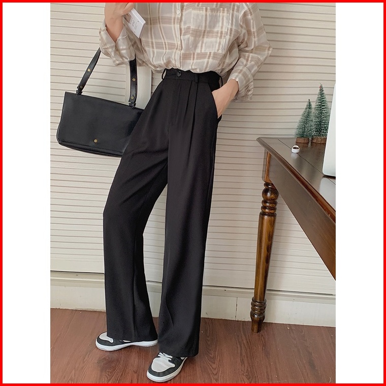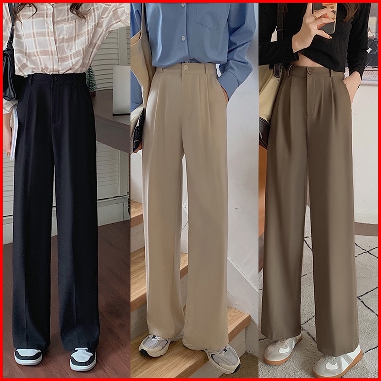 Celana Kulot Kasual Loose Celana Panjang High Waist Wanita Korea Style Hitam Straight Pants Celana Wanita