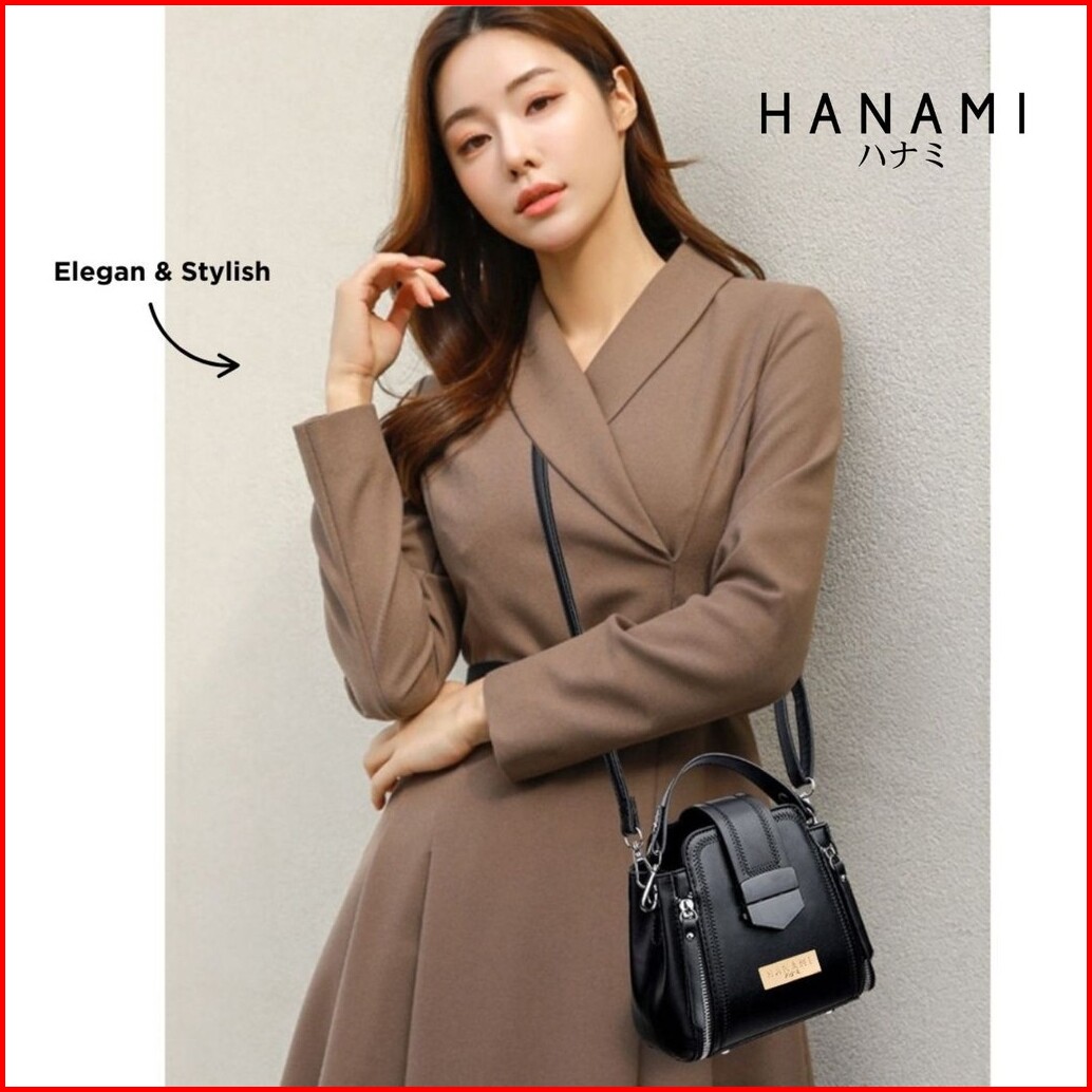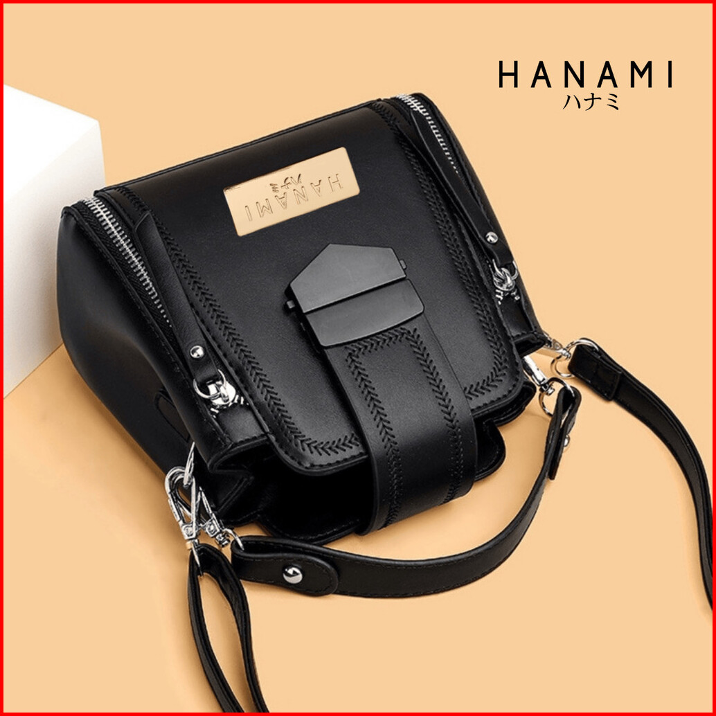 Hanami Tas Selempang Wanita Korea Kekinian Kulit Hitam Pettica Ta854b5 Sling Bag Remaja Cewek Simple Shoulder Bahu Murah