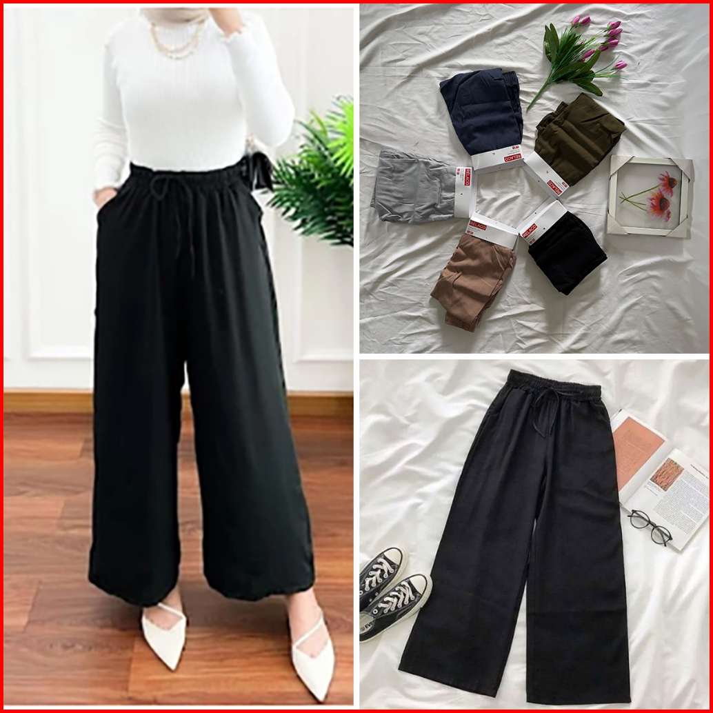 Uniqlo Celana Kulot Wanita Kekinian Rayon Premium Panjang Full Package