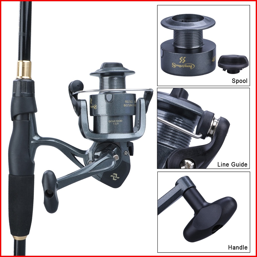 Sougayilang Joran Pancing Set Batang Berputar Dengan Tubuh Karbon Dan 6 Bb Rasio Roda Gigi Tinggi 5.2 1 Set Reel Berputa