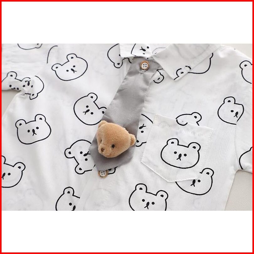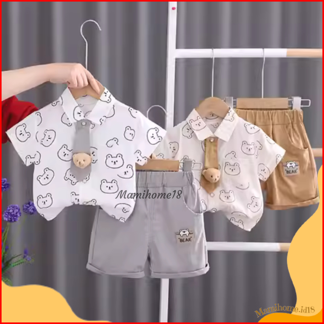 Mamihome - Setelan Kemeja Anak Dapat Dasi Baju Anak Laki Laki Setelan Kemeja Lengan Pendek