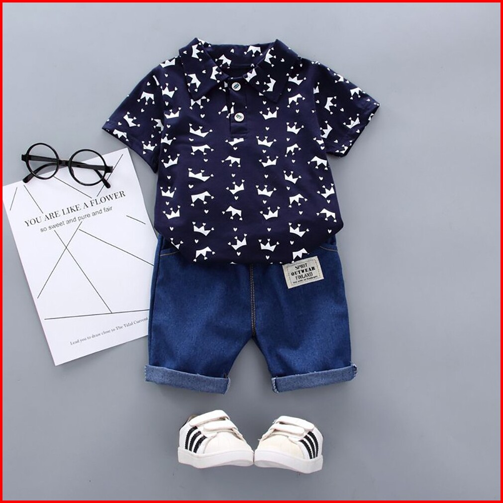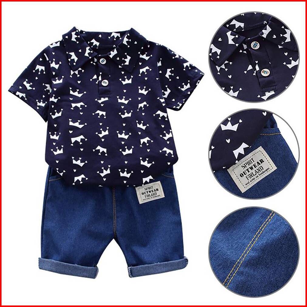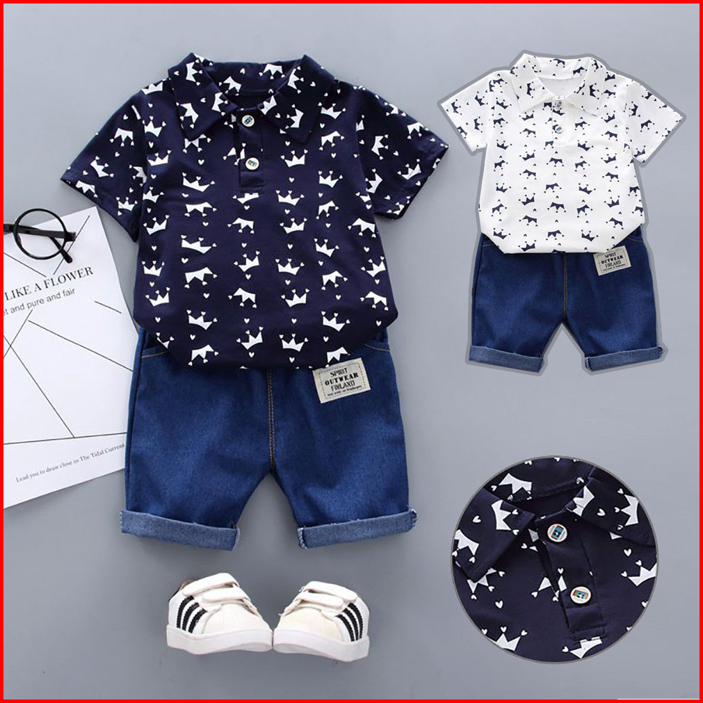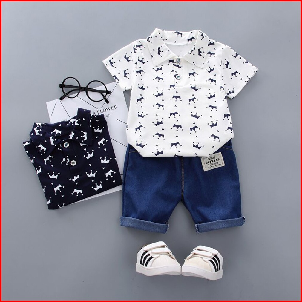 Setelan Kemeja Anak Import Casual Polo Anak Kerah Kancing Bayi Laki-laki Lengan Pendek 1 2 3 4 Tahun