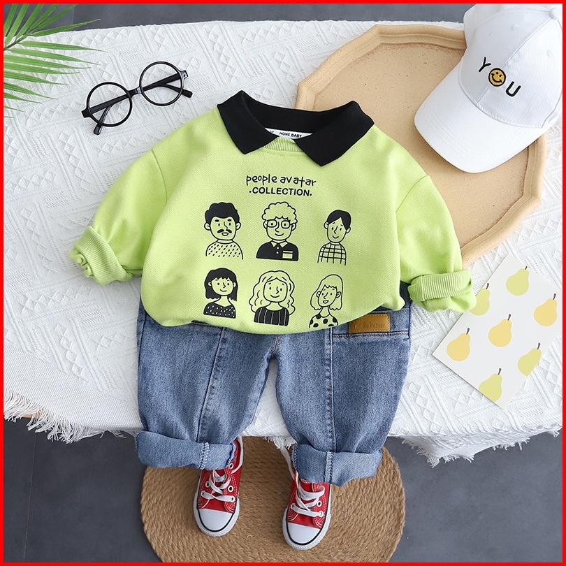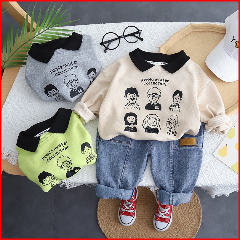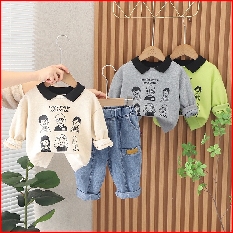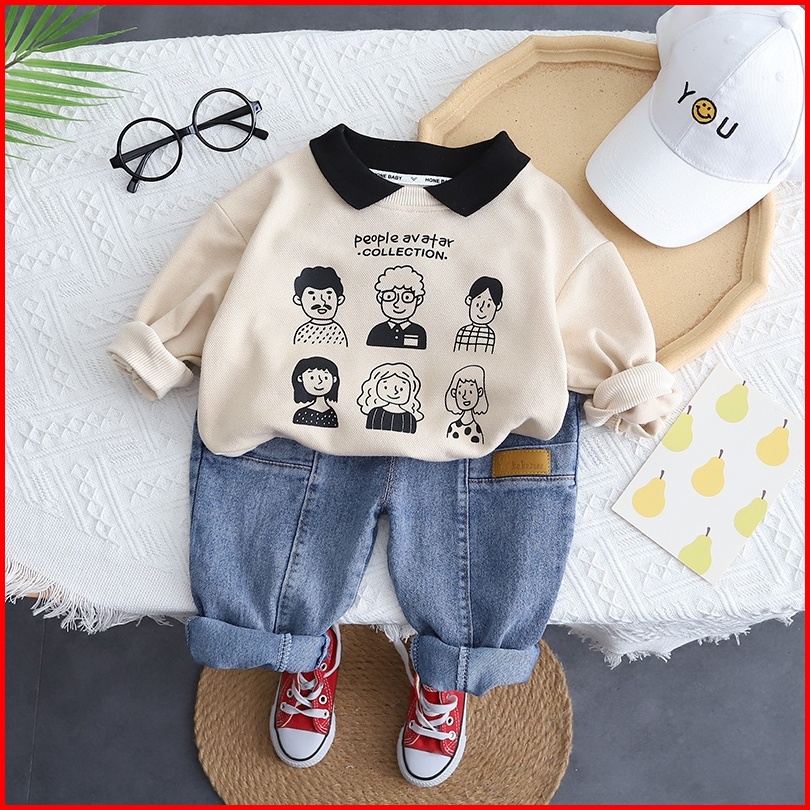 Setelan Anak Laki Laki Import Setelan Sweater Kerah Lengan Panjang Motif Orang Anak Cowok Impor Baju Anak Celana Jeans