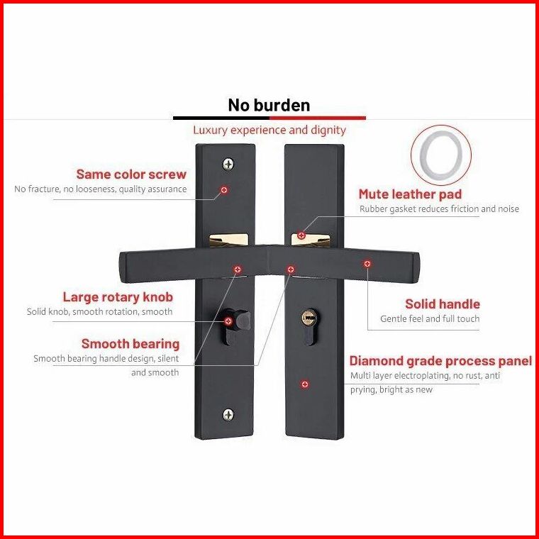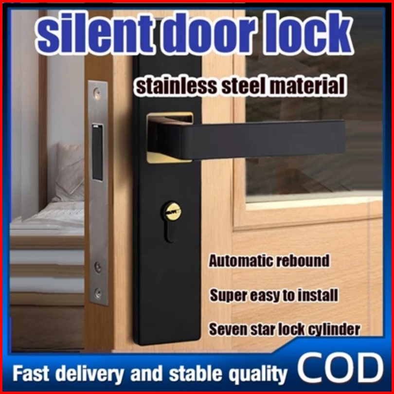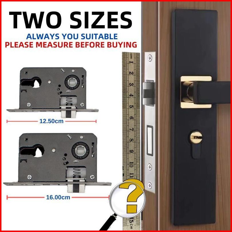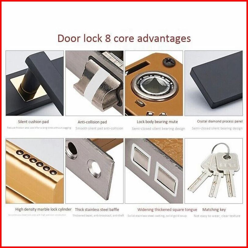 16cm Gagang Pintu Rumah Kunci Pintu Senyap Handle Pintu Rumah Kunci Pintu Gagang Cylinder Door Lock Set Hitam Gagang Pin