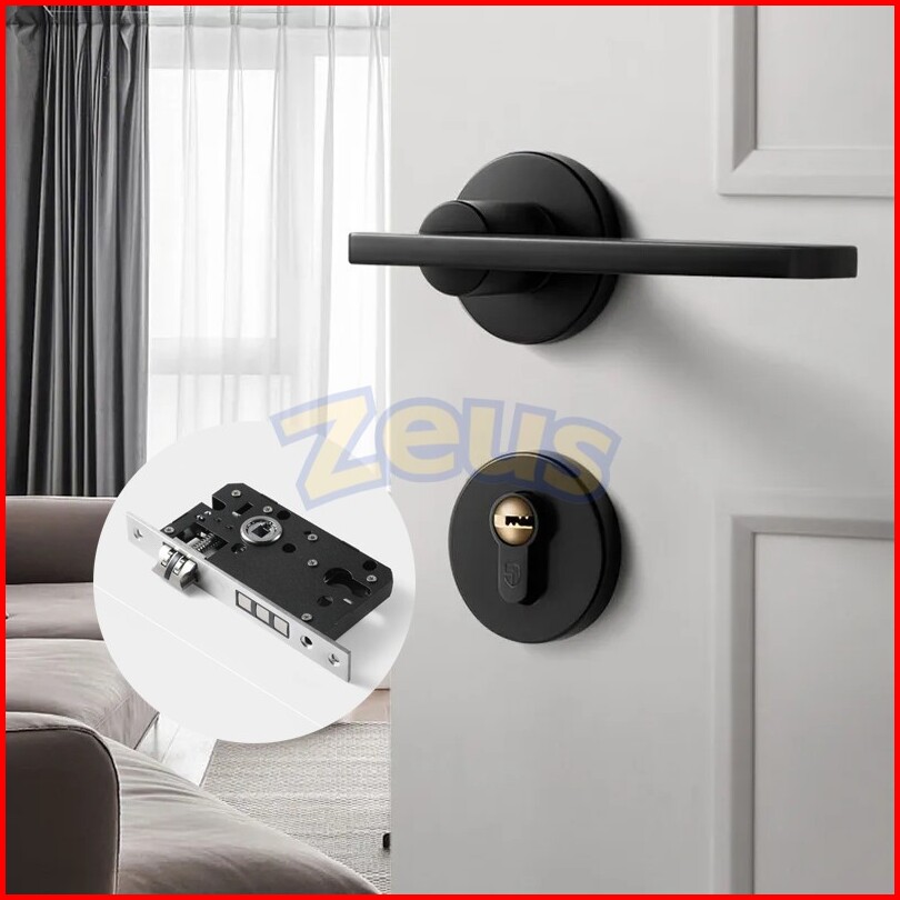 Codgagang Pintu Kantor Rumah Door Lock Gagang Pintu Gaya Eropa Hitam Full Set Kunci Pintu Premium Door Lock Kunci Pintu