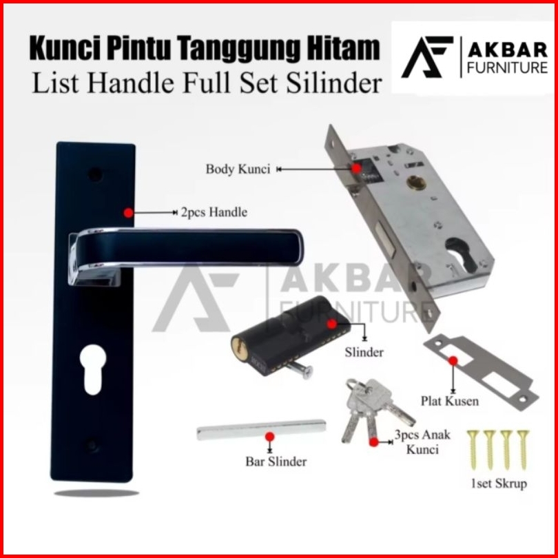 Paket Slot Pintu Hitam Premium Uk Tanggung Selot Pintu Hitam 20cm Handle Pintu Hitam
