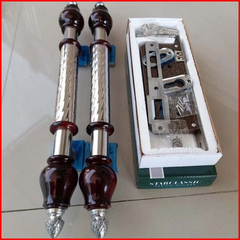 Handle Gagang Pintu Rumah Set Body 1set Isi 2pcs Kunci Ukuran 45cm Bahan Stainless Anti Karat
