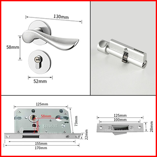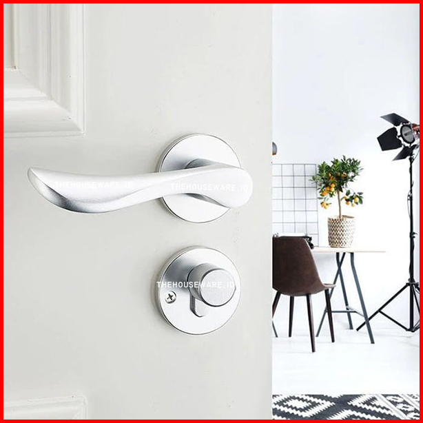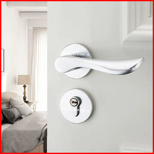 Kunci Pintu Full Handle Set Gagang Pintu Lengkung Putih Silver Premium