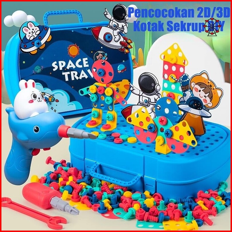 Ferris Wheel Alat Simulasi Kotak Bata 3d Diy Alat Simulasi Mainan Perakitan Anak-anak Mainan Pendidikan Rakit Sekrup Pem