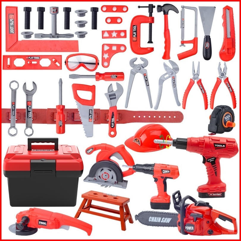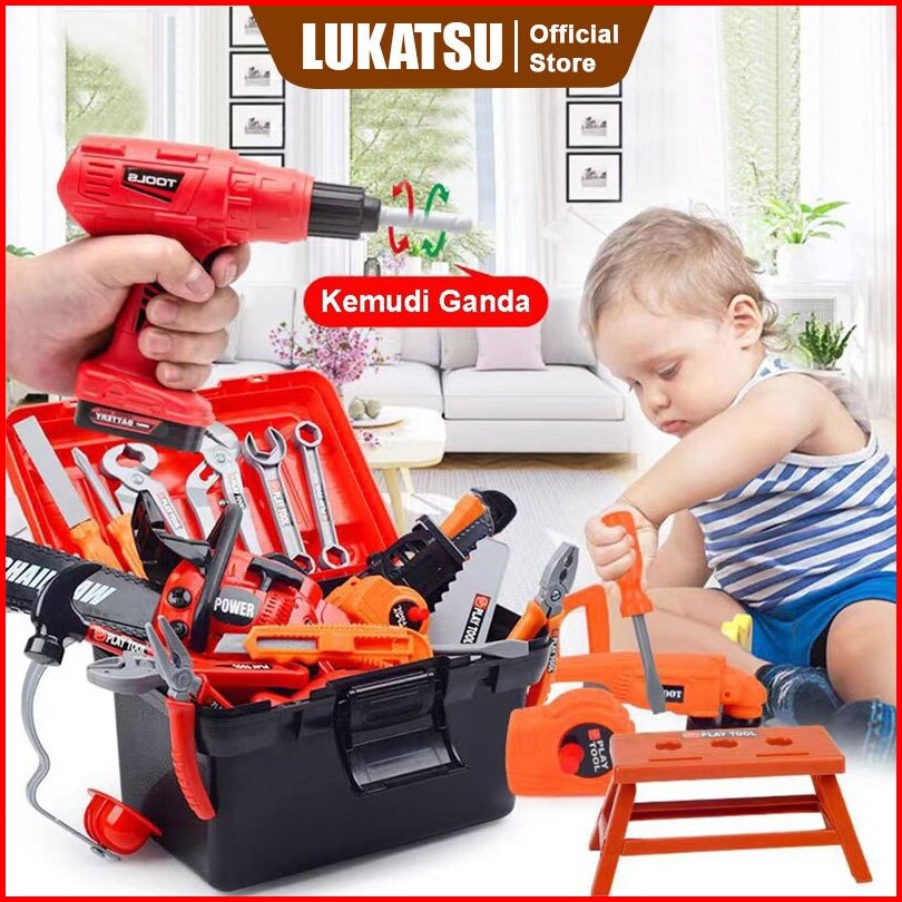 Lukatsu 68pcs Mainan Toolbox Kit Simulation Bor Listrik Kit Perbaikan Mainan Set Alat Anak Laki-laki Simulasi Elektrik A