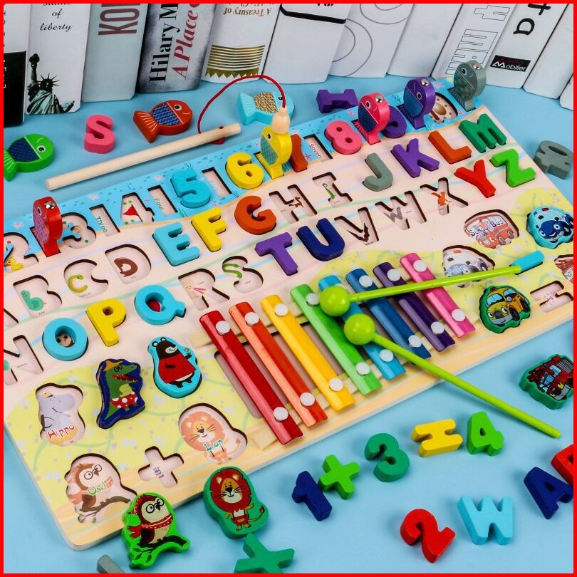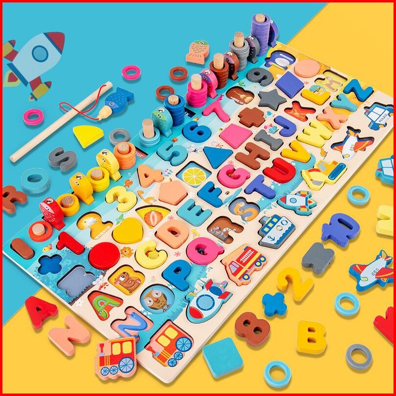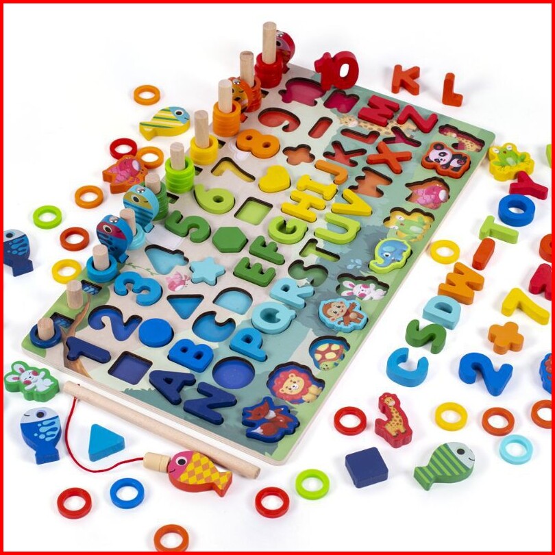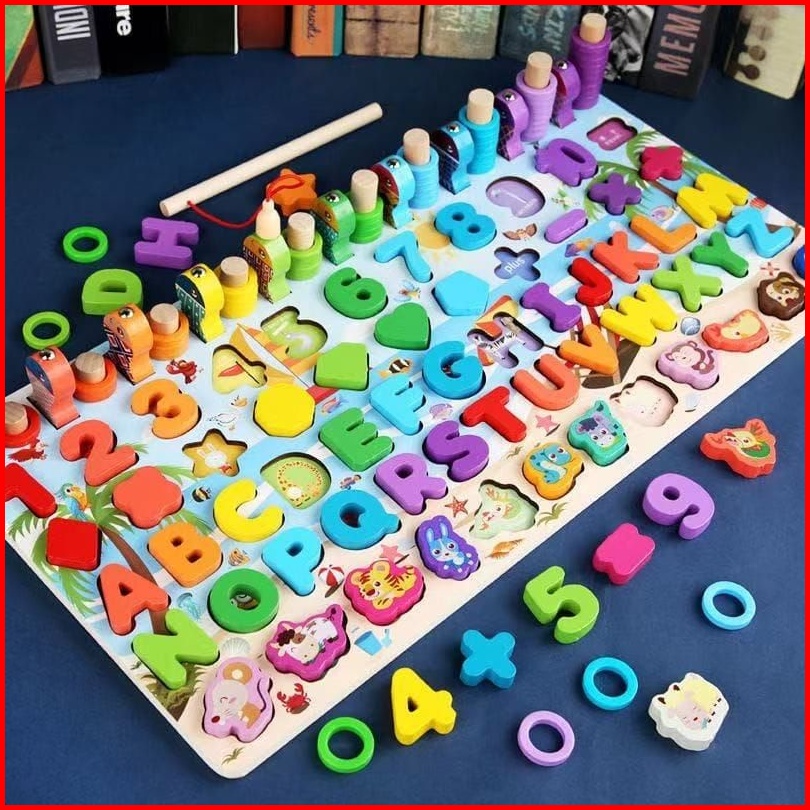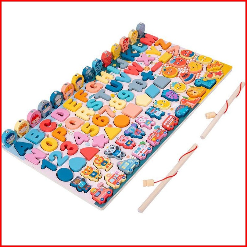 Mainan Montessori Fishing Game Mainan Kayu Pancingan Donat Ikan