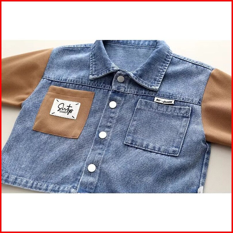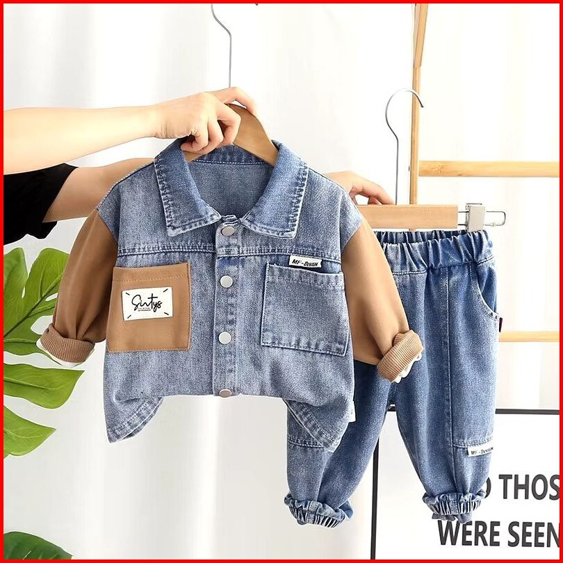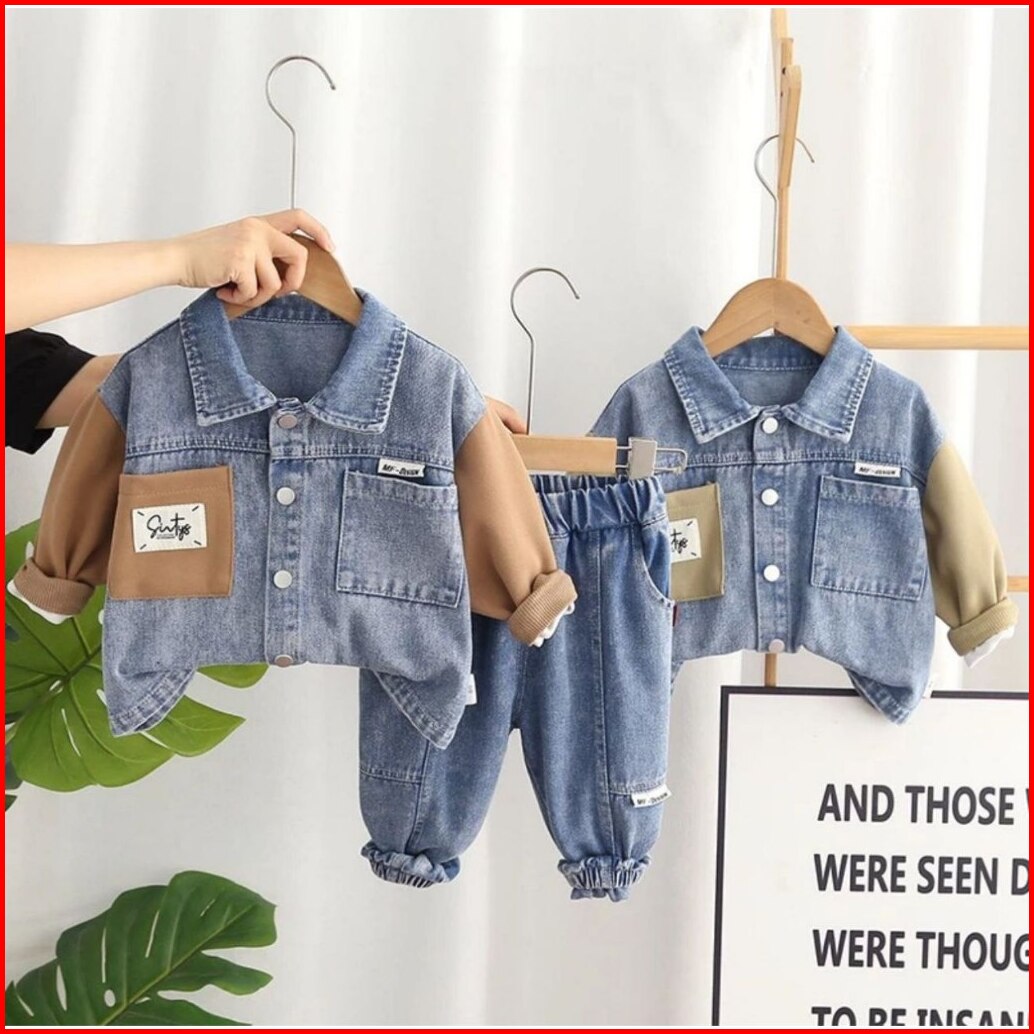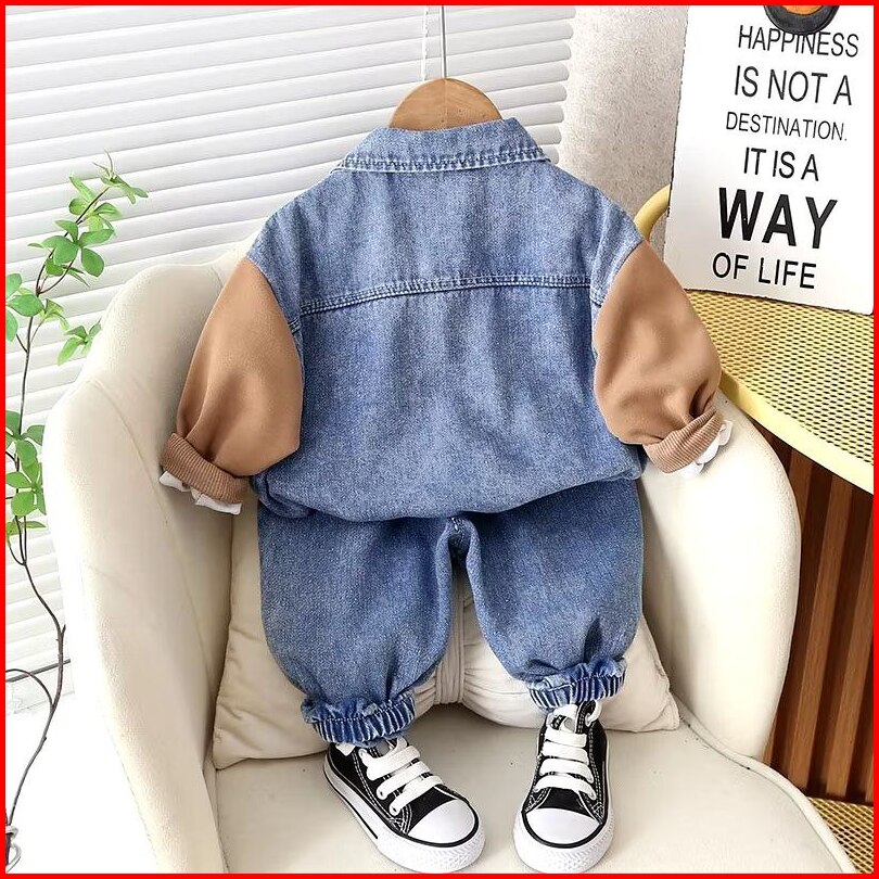 Setelan Anak Kemeja Kantong Full Denim Pakaian Anak Laki-laki Dan Perempuan Usia 1-5 Tahun Terbaru Viral