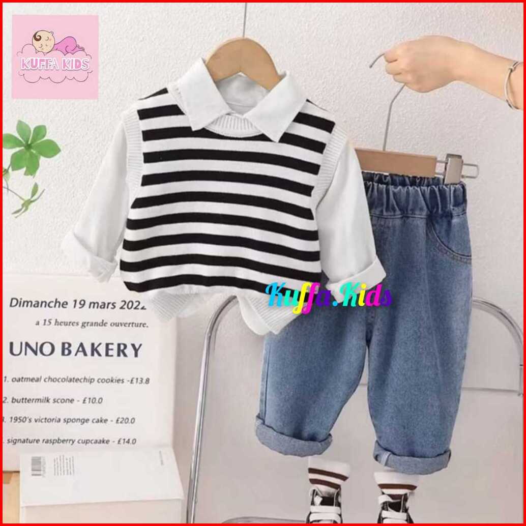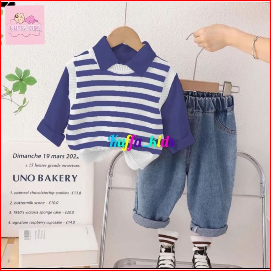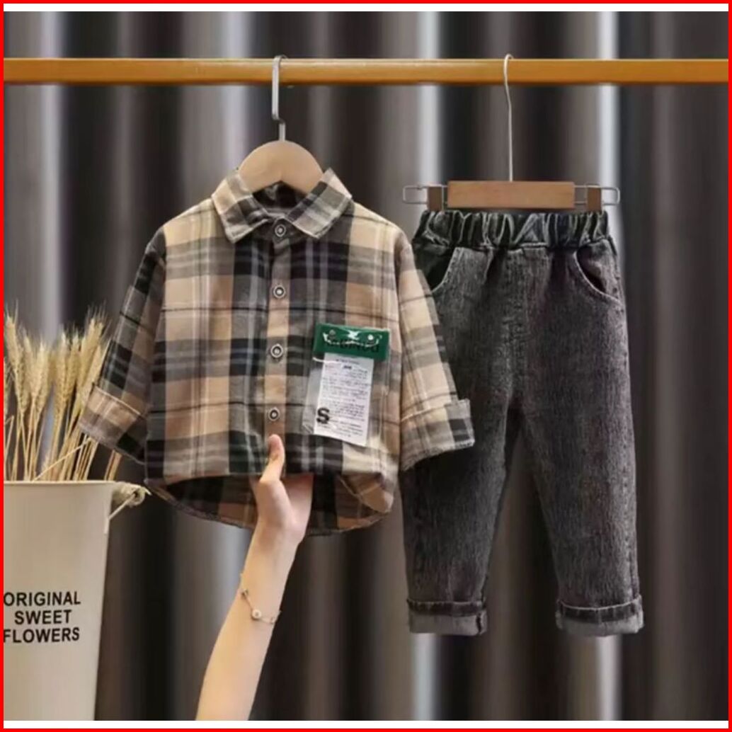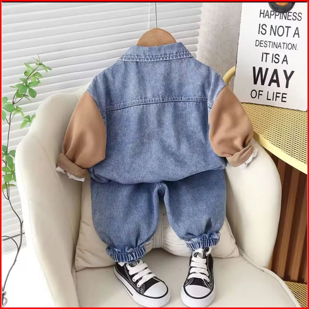 Setelan Kemeja Denim Anak Laki Laki Usia 1-5 Tahun Setelan Impor Premium