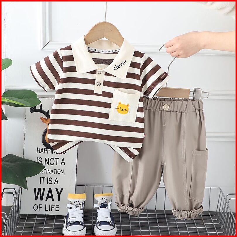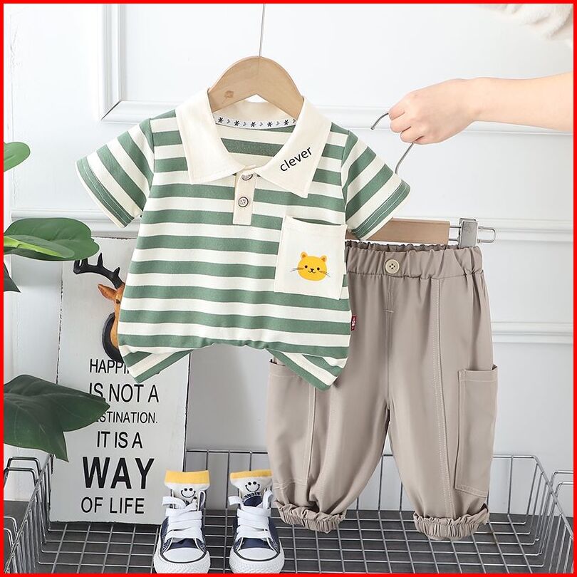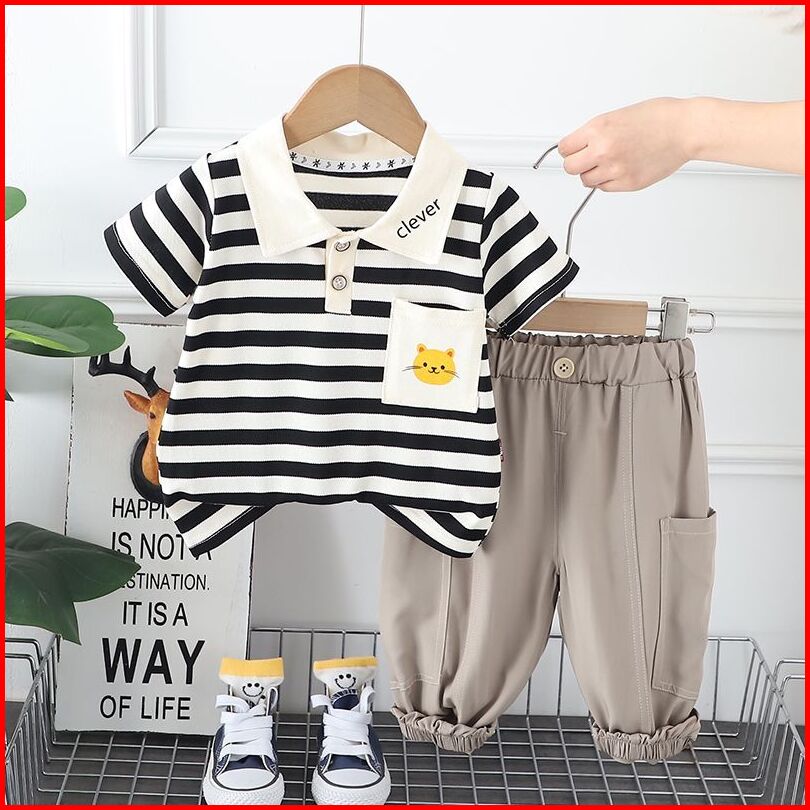 Setelan Anak Laki-laki 0-5 Tahun Setelan Anak Cowok Celana Panjang Import Baju Kerah Polo Anak