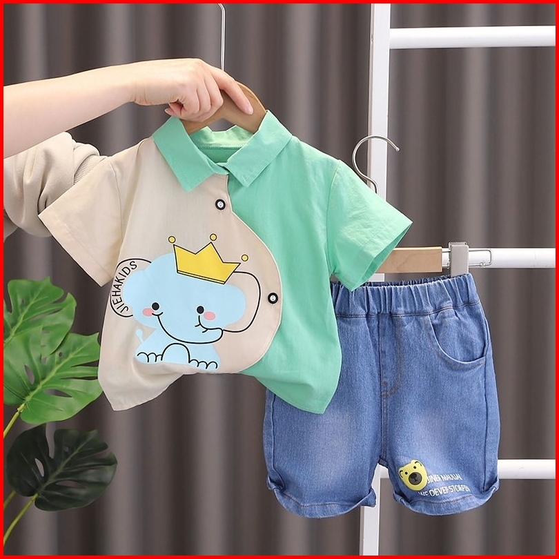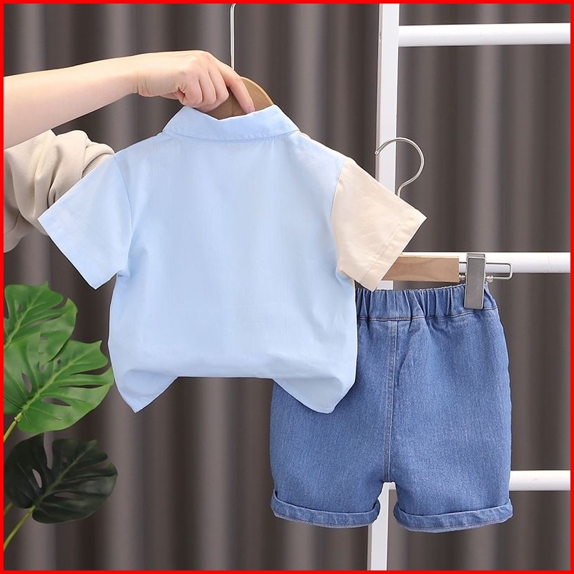 Setelan Anak Laki-laki Import Setelan Anak Kemeja Lengan Pendek Setelan Jeans Anak Cowok Setelan Anak Keren