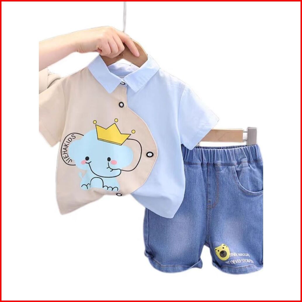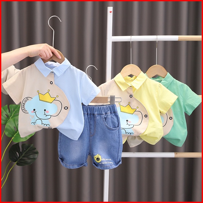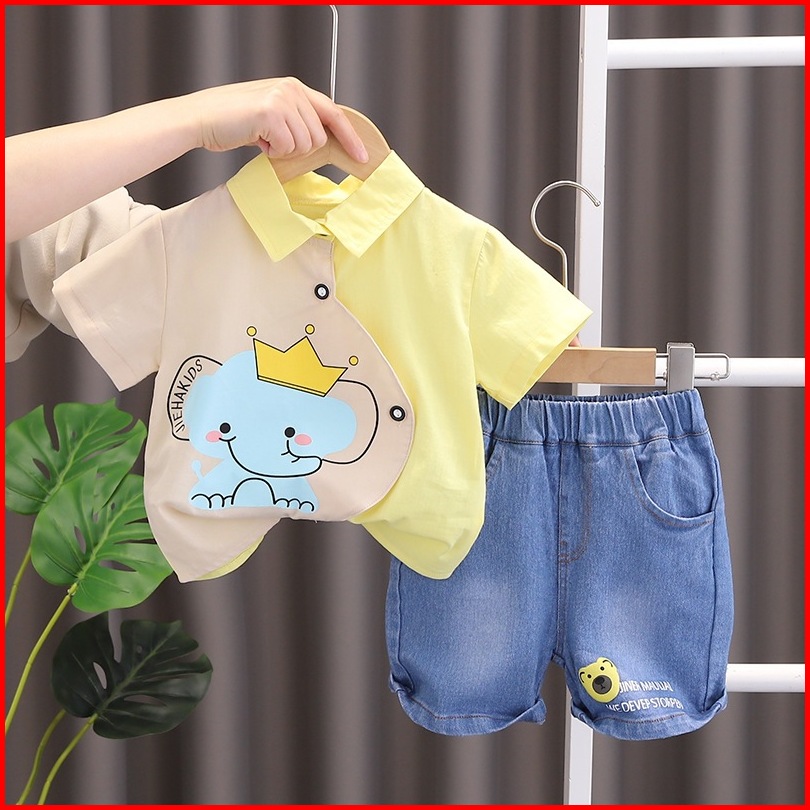 One Set Anak Laki Setelan Baju Anak Import Usia 1-4th Setelan Kemeja Jeans