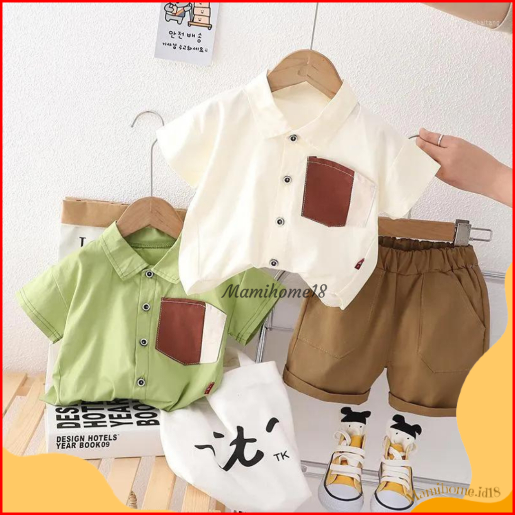 Mamihome - Setelan Kemeja Anak Laki Laki Kemeja Anak Lengan Pendek Setelan Kemeja Korean Style Kb33