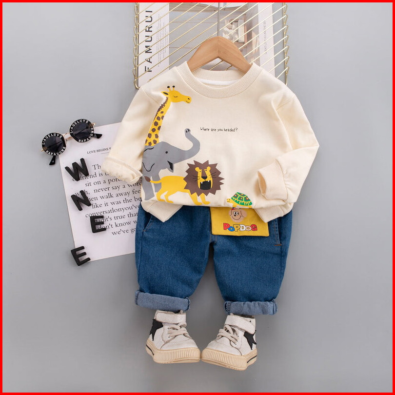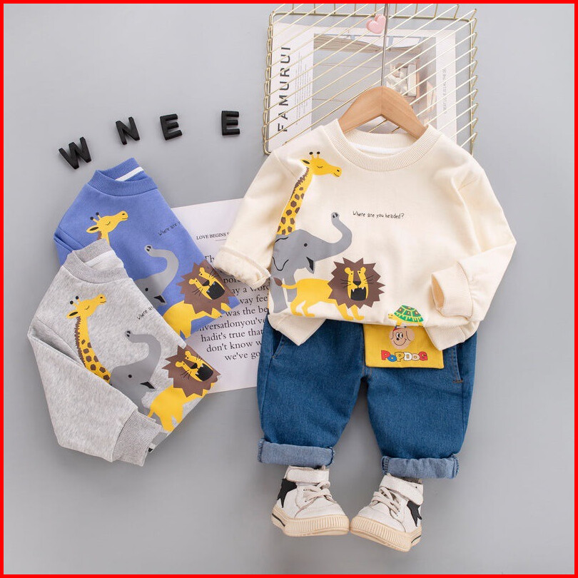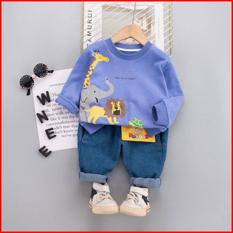 345323 - Setelan Sweater Crewneck Celana Panjang Jogger Jeans Anak Laki-laki - Motif Family Animal