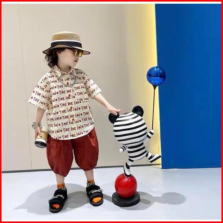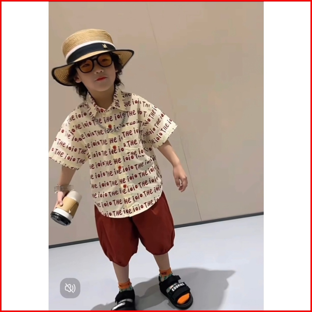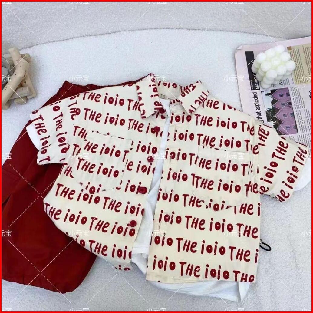 Set Kemeja Anak Laki-laki Setelan Kemeja Anak Laki-laki Kemeja Lengan Pendek Celana Cargo Bahan Cepat Kering Baju Anak L