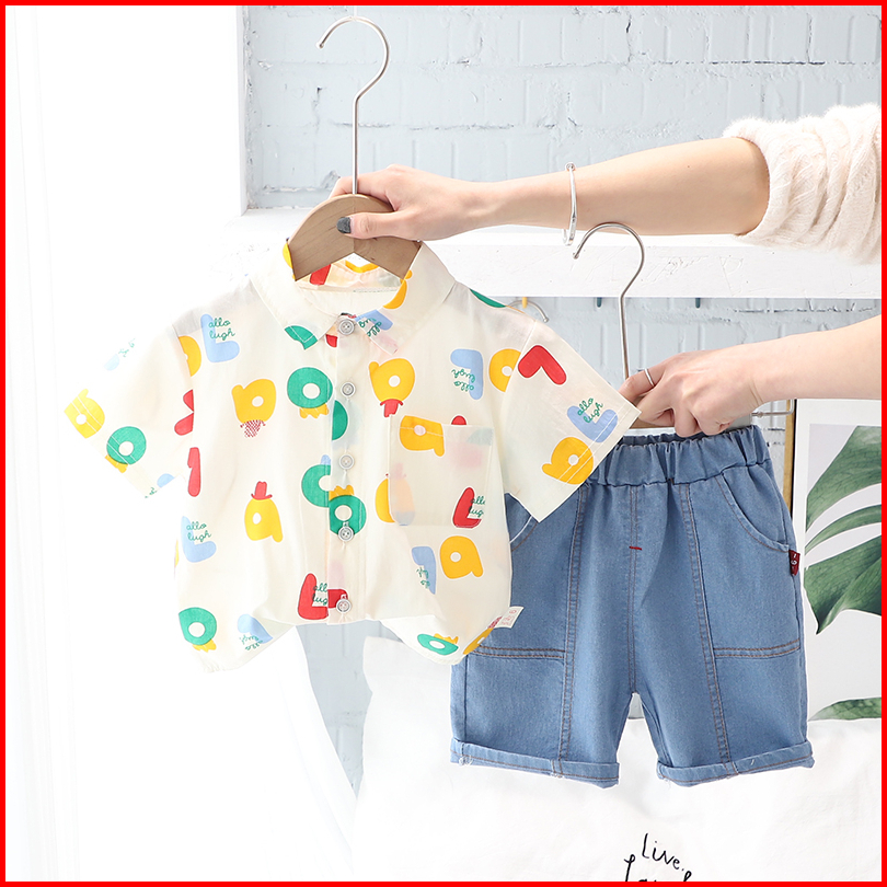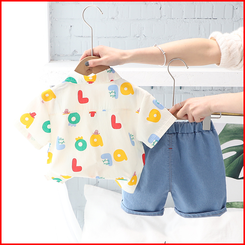 Setelan Kemeja Anak Laki Laki Import Stelan Kemeja Motif Huruf Anak Cowok Impor Setelan 2pcs Kemeja Dan Celana Pendek An
