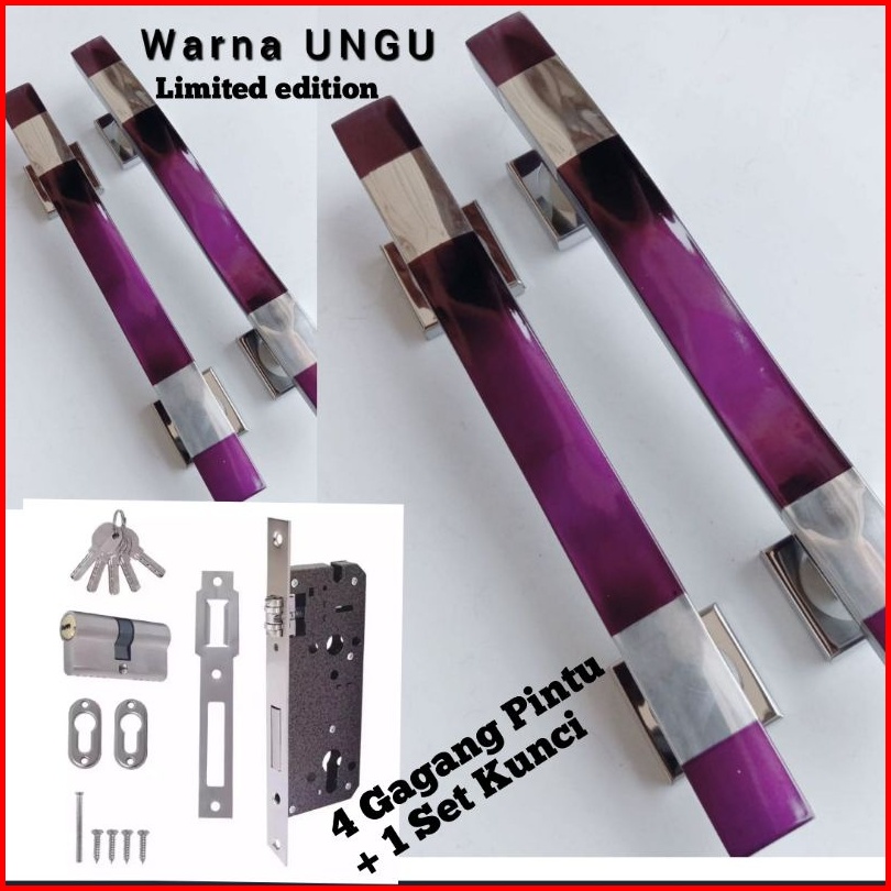 Fullset - Pegangan Pintu Rumah 45cm 33cm Satu Set Kunci Rumah Handle Pintu Rumah Ungu