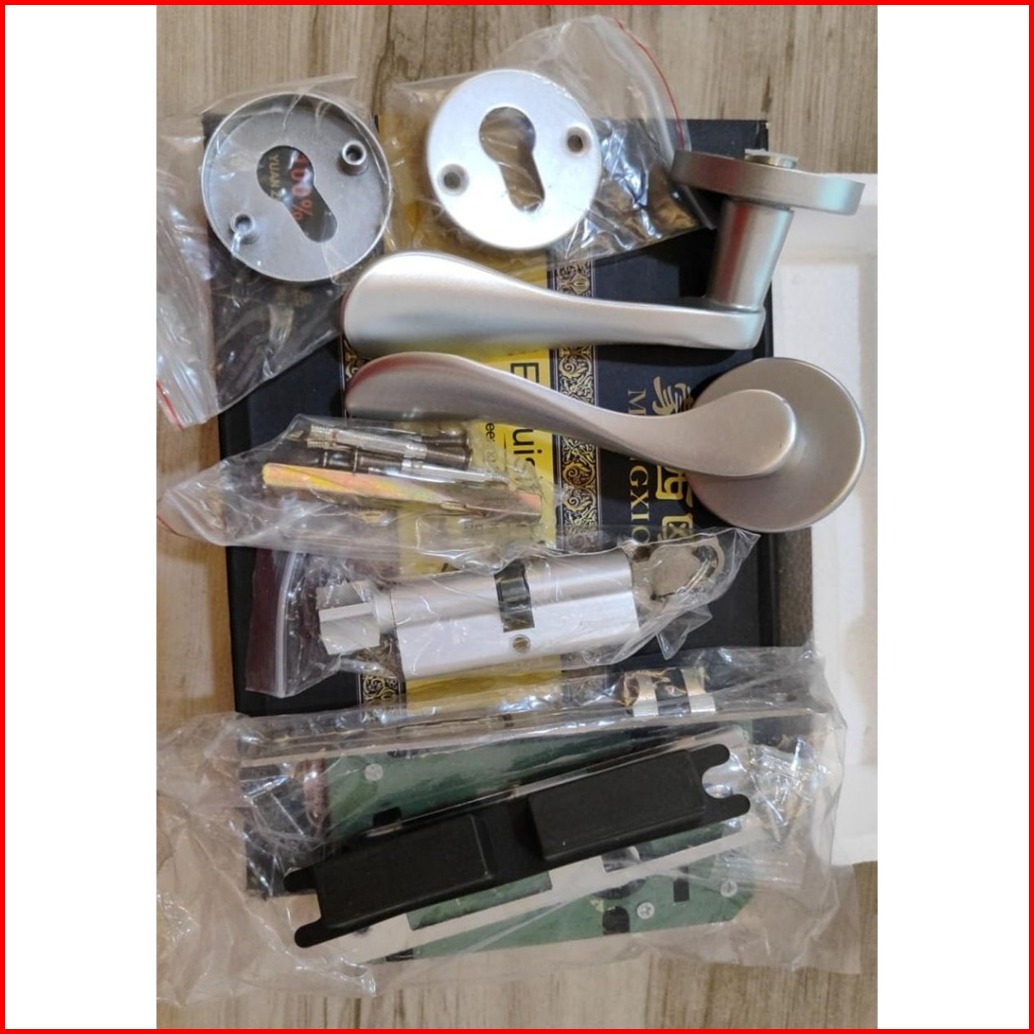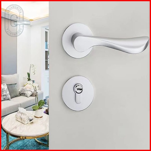 Gagang Pintu 1 Set Siap Pasang Gaya Eropa Handle Lock Door White Minimalis Model Lurus Bedroom Living Room Mechanical An