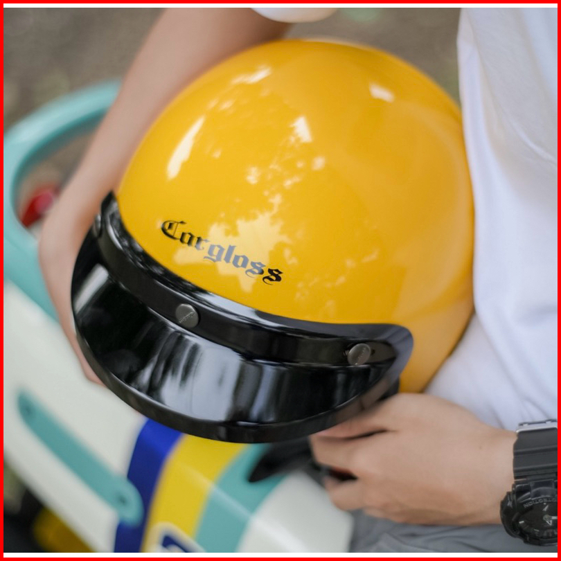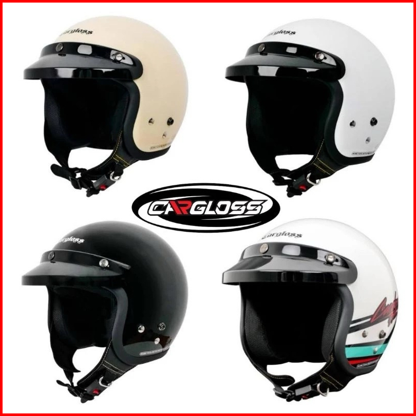 Cargloss Cfm Retro Helm Half Face - Deep Black Glossy Original 100