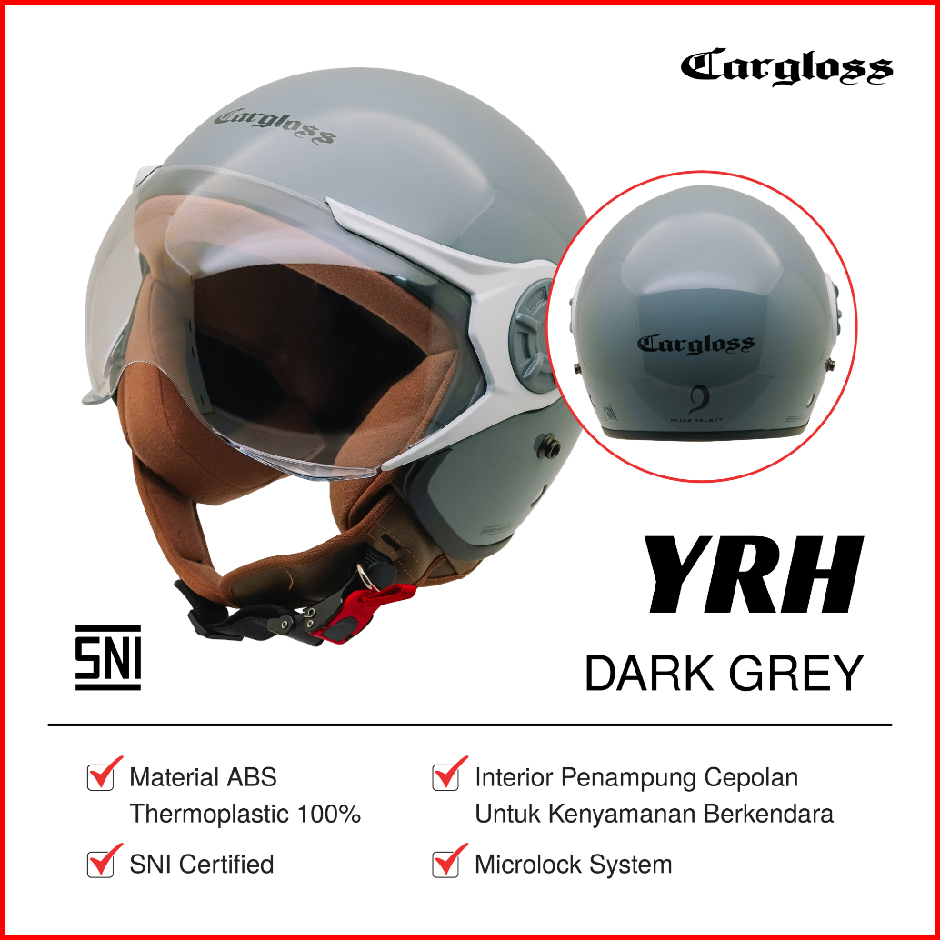 Cargloss Yrh Hijab Retro Helm Half Face - Dark Grey