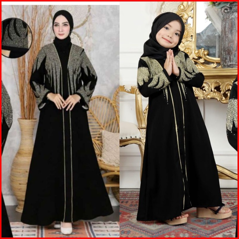 Jubah Dress Abaya Hitam Busui Bordir Dubai 445 Couple Anak Free Pasmina