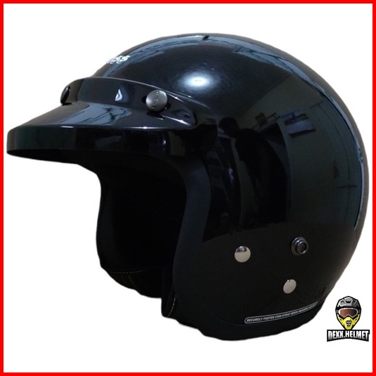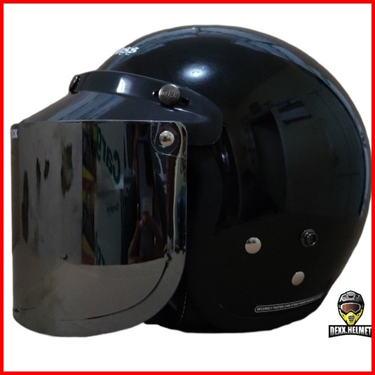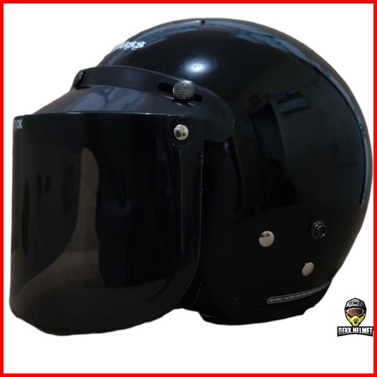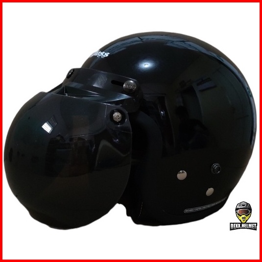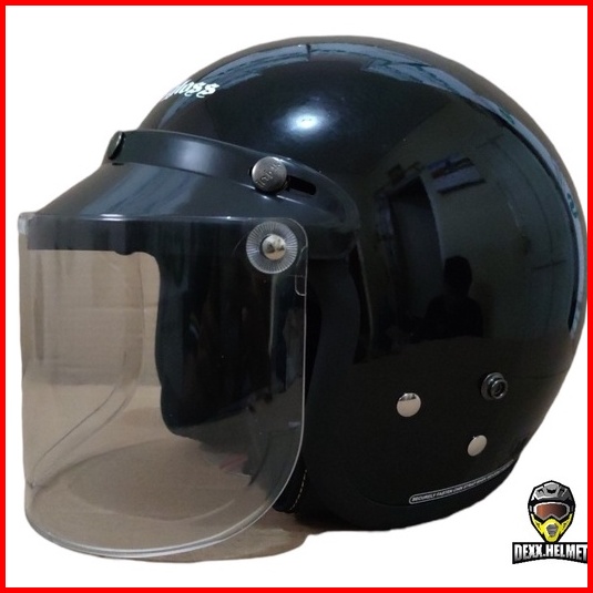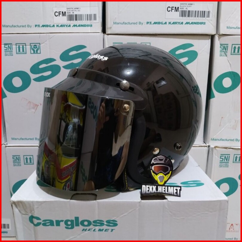 Helm Cargloss Retro Original Hitam Black Glossy Metalic Kaca Datar