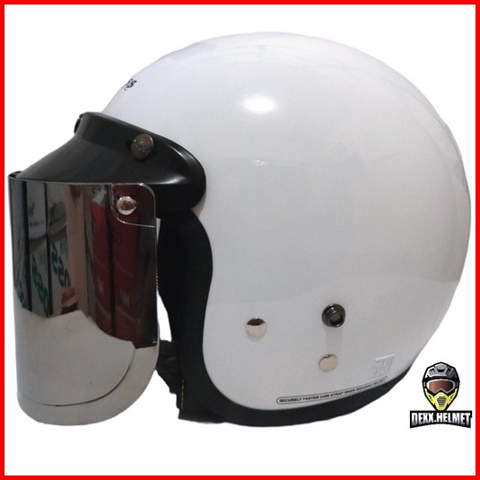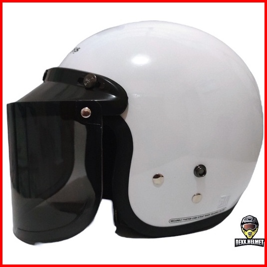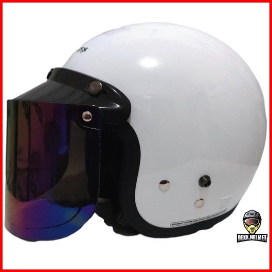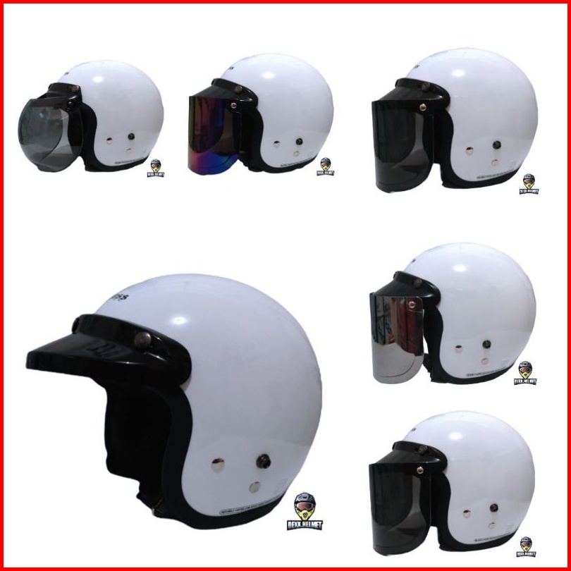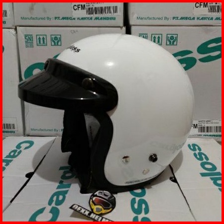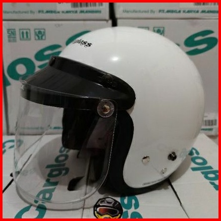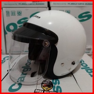 Helm Cargloss Retro White Putih Glossy Original Kaca Datar Free Kardus 2kg