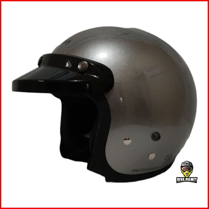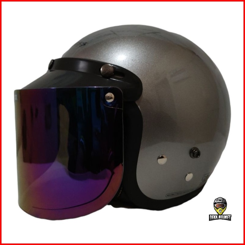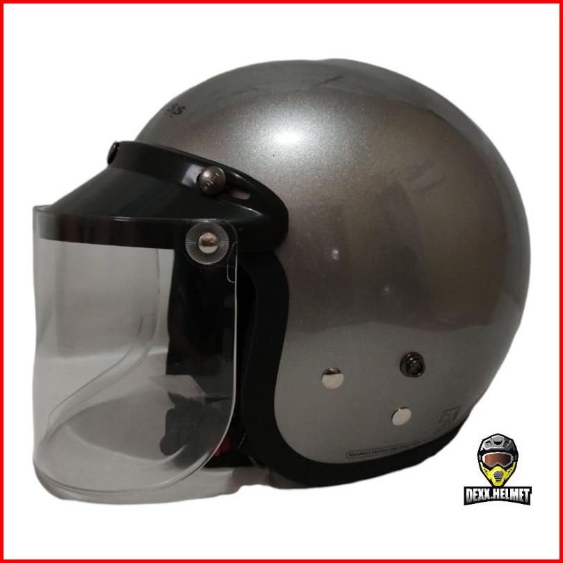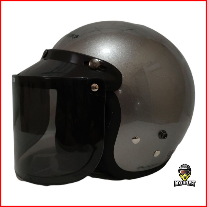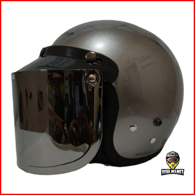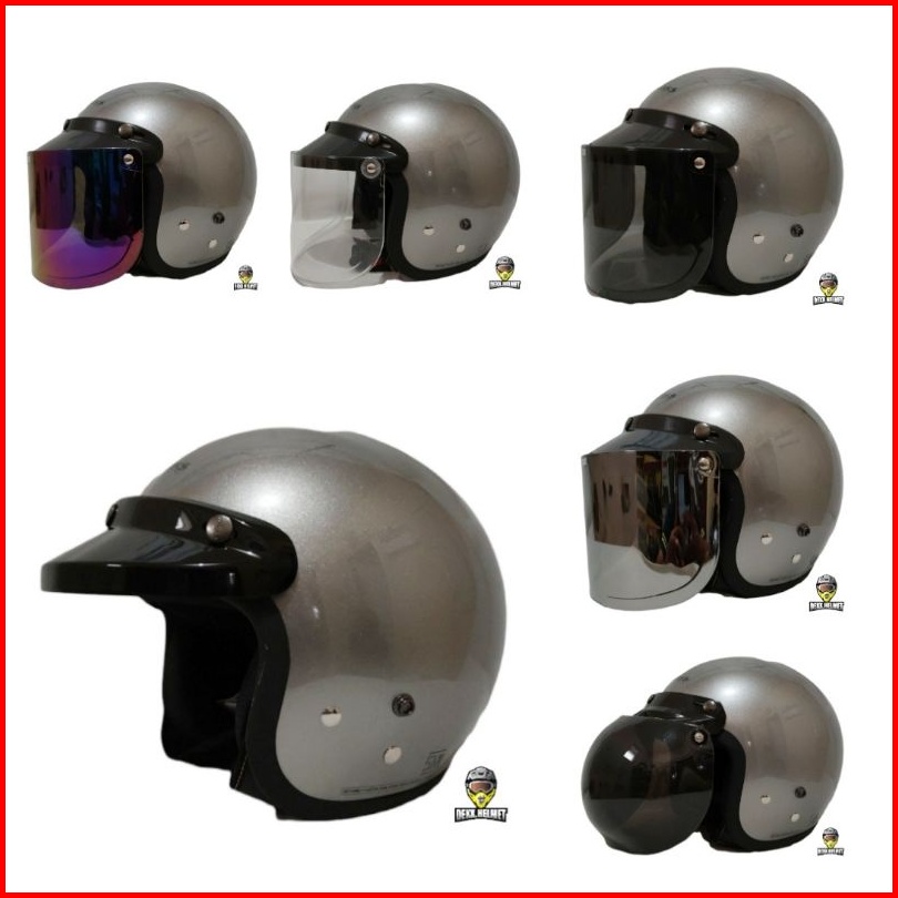 Helm Cargloss Retro Cfm Silver Met Glossy Original Kaca Datar