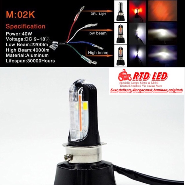 [PROMO] Lampu led motor lampu Utama motor led headlamp bohlam motor RTD M02K original AC-DC