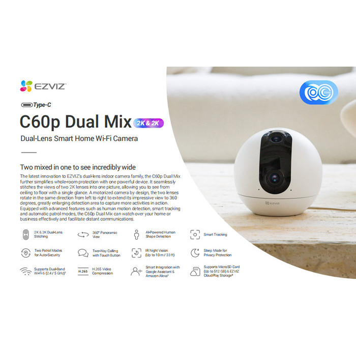 Ezviz C60p Dual Mix 2K&2K Dual-Lens Smart Home Wifi Camera Indoor