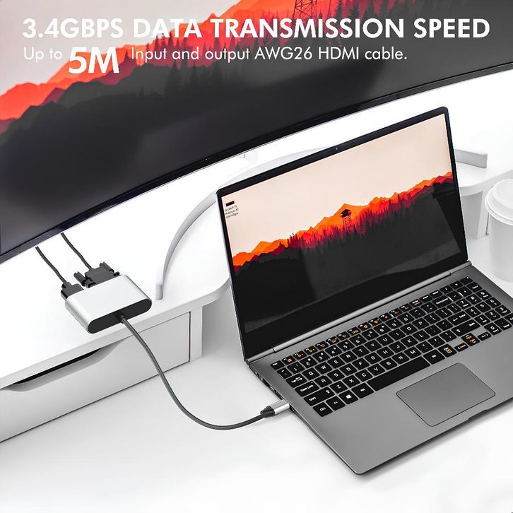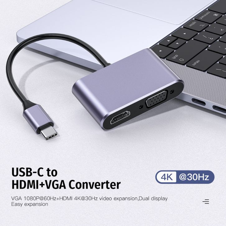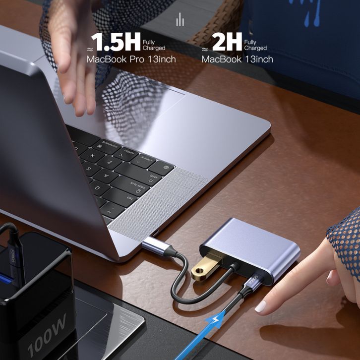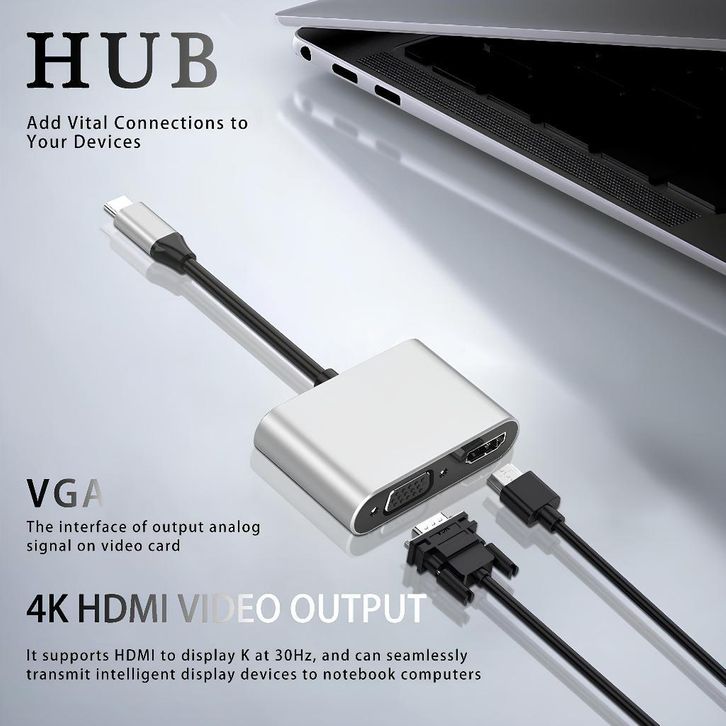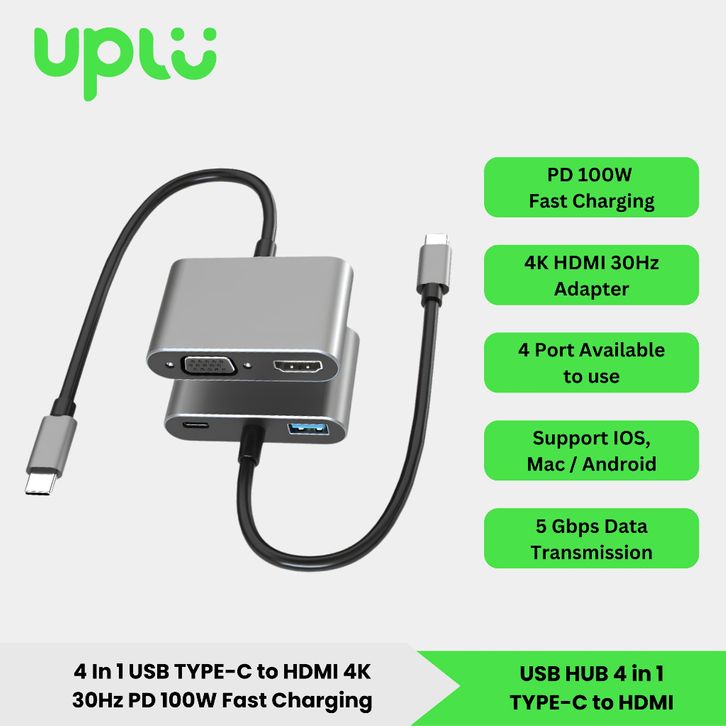 UPLU 4 IN 1 HUB Adapter USB Type C toUPLU 4 IN 1 HUB Adap HDMI & VGA 4K 30Hz High Transmission Data PD100W Fast Charging