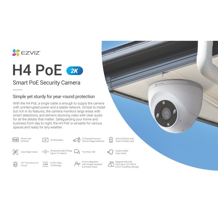 Ezviz H4 PoE 2K Smart CCTV Home Pan & Tilt PoE IP Camera Outdoor