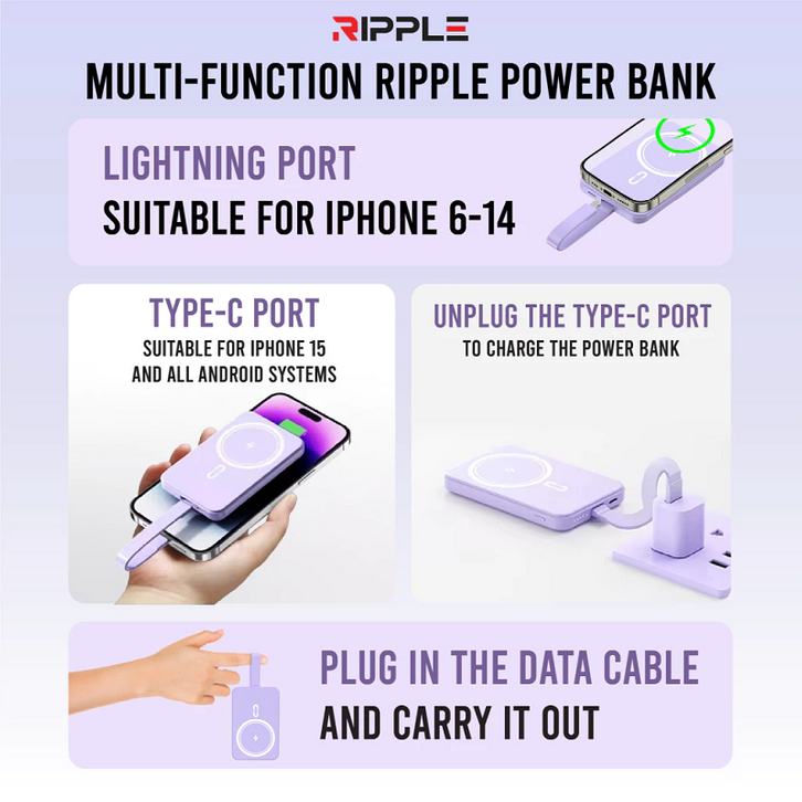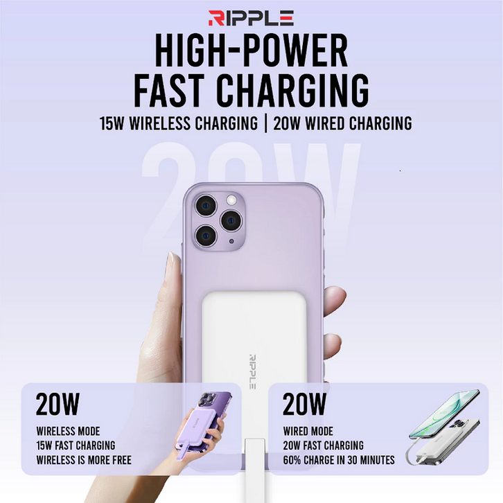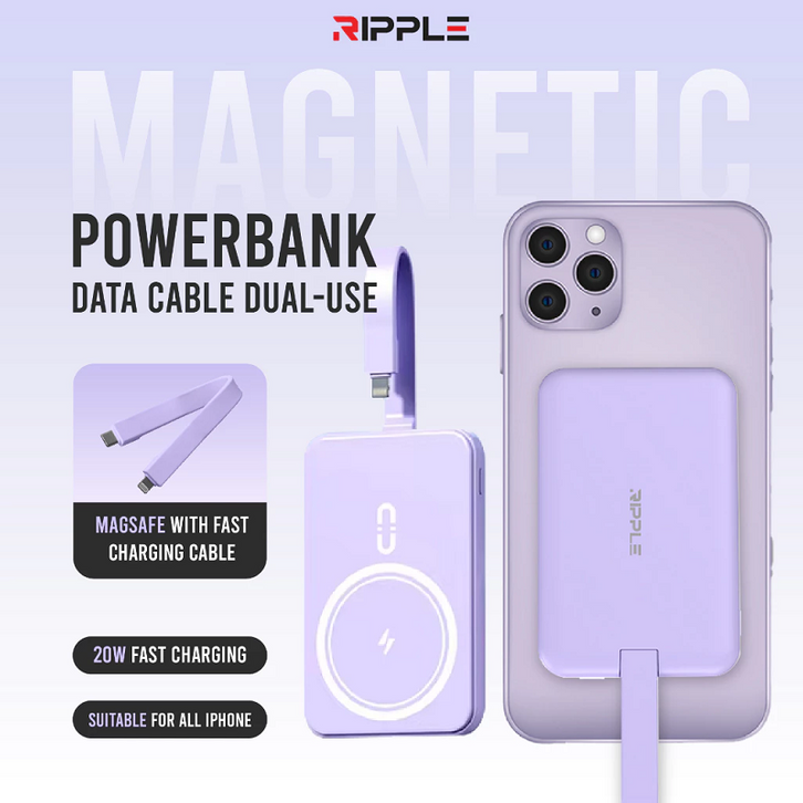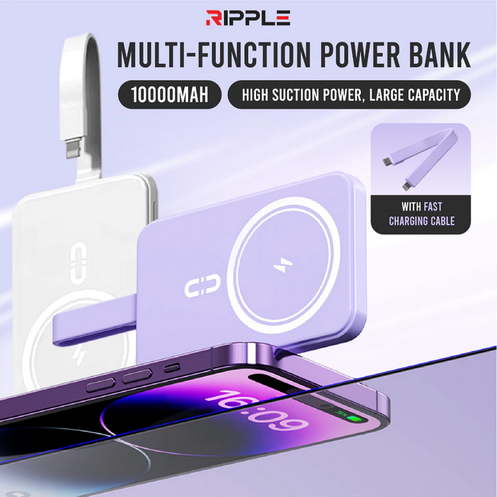 Ripple Wireless 10000mAh Powerbank Magnetic Magsafe 20W Fast Charging for iphone Type C Power Bank