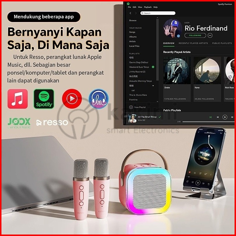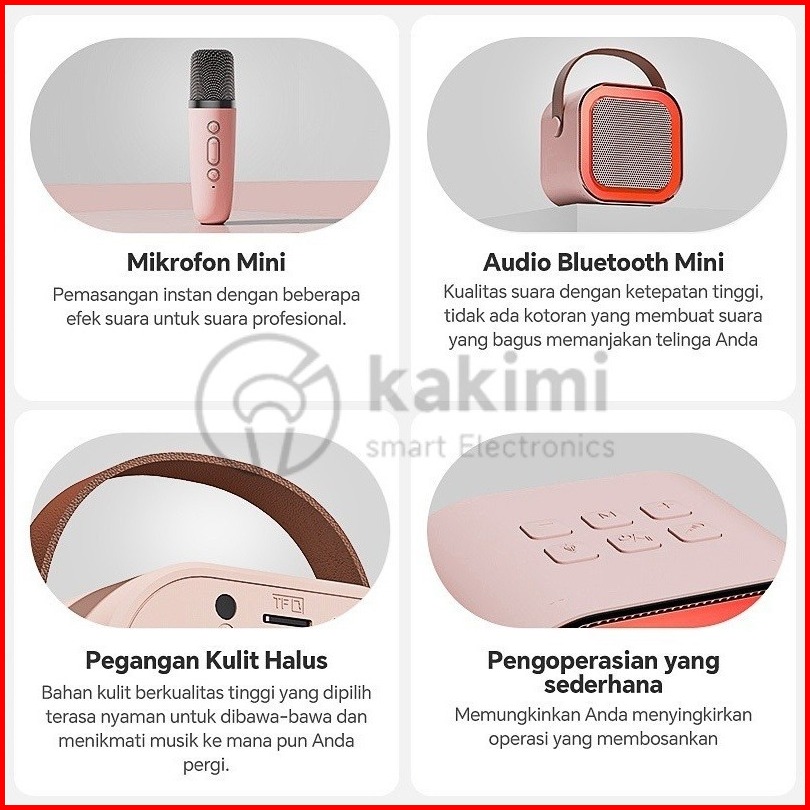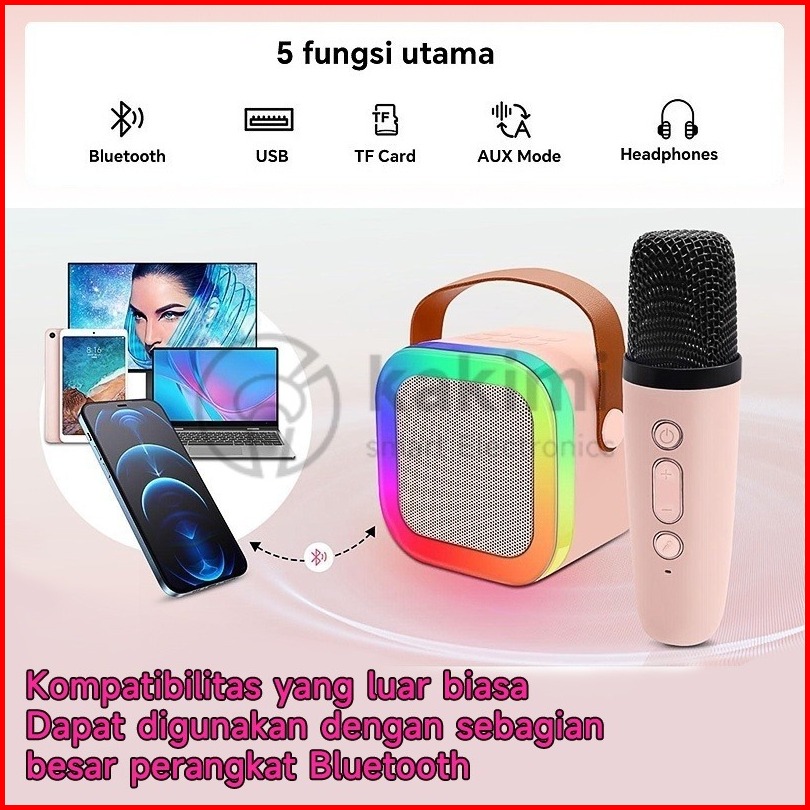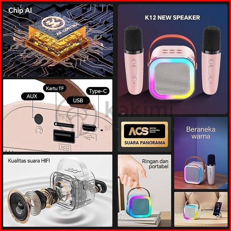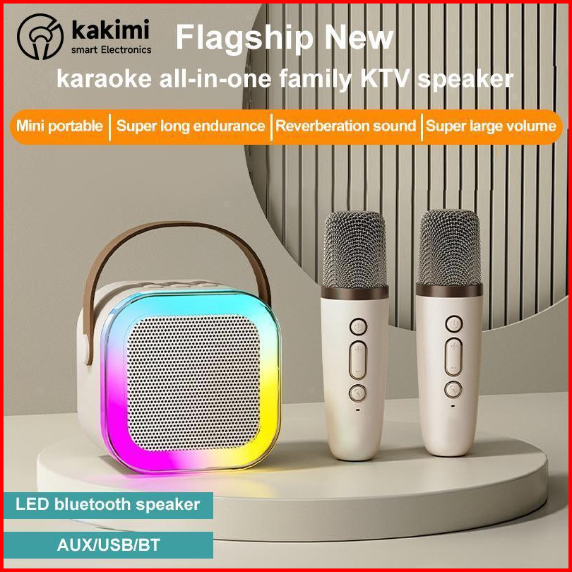 Kakimi K12 Speaker Bluetooth Plus Mic Actual Bluetooth Mini Speaker Portable Karaoke Speaker With 2 Mic 1 Set Rgb Lampu