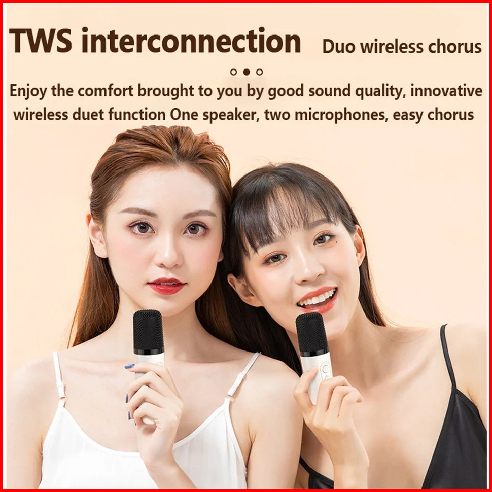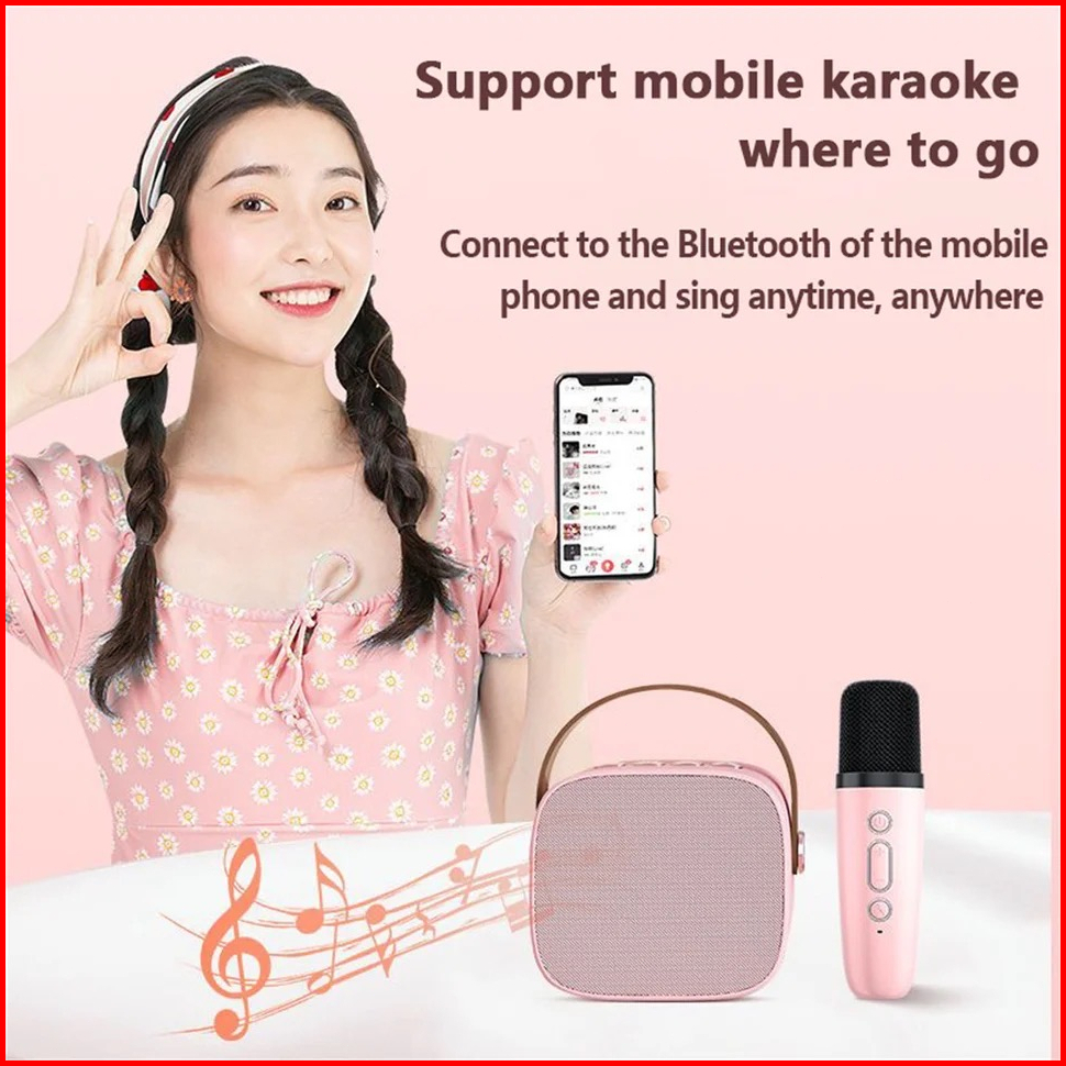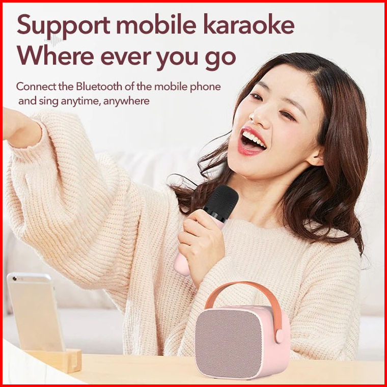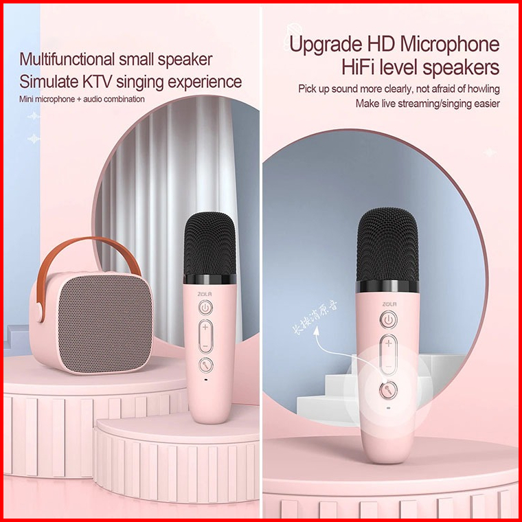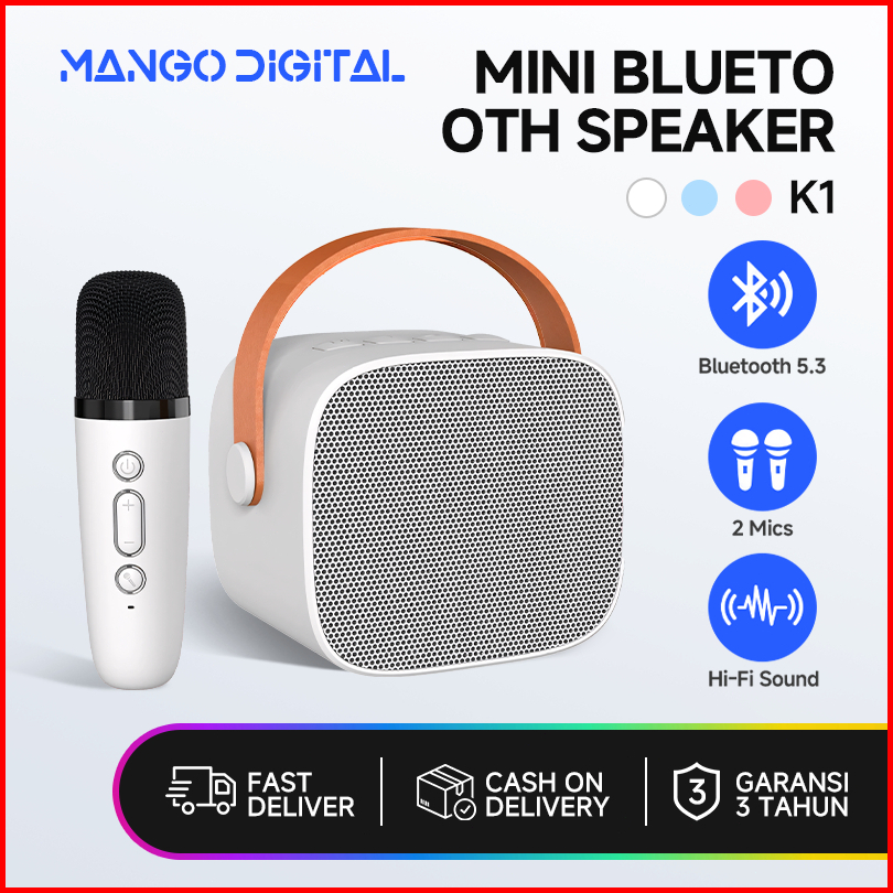 Speaker Mini Bluetooth 2 Mic 1 Karaoke Bluetooth 5.3 Set Mini Full Bass Portable Wireless Dapat Terhubung Ke Keponsel Ko