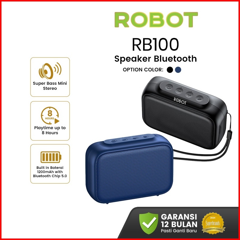 Robot Speaker Bluetooth 5.0 Super Bass Mini Stereo Tws Hi-fi Sound Portable Pemakaian Hingga 8 Jam Rb100 Original - Gara