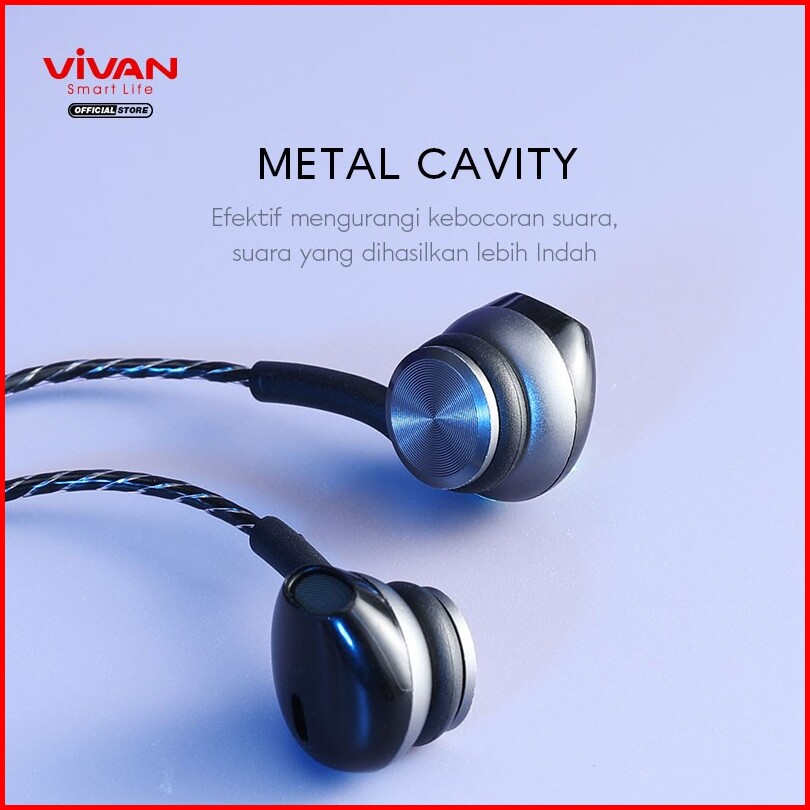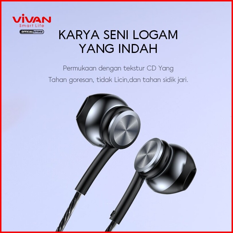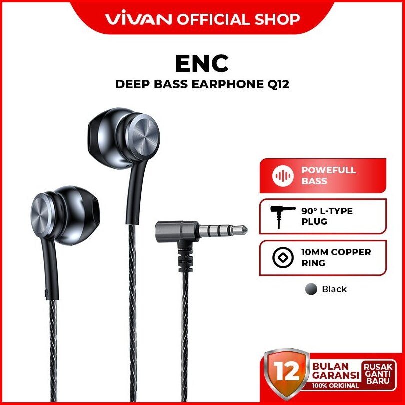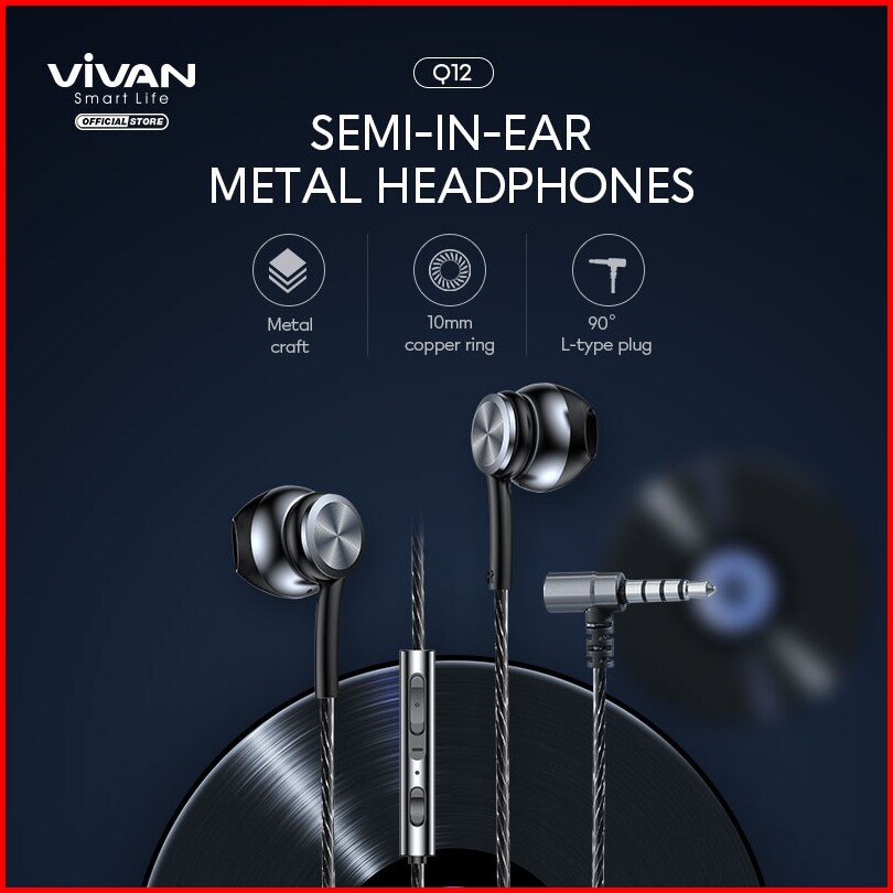 Headset Vivan Q12 Wire Earphone Deep Bass Mic Konektor L 90 Aux 3.5 Mm - Garansi Resmi 1 Tahun