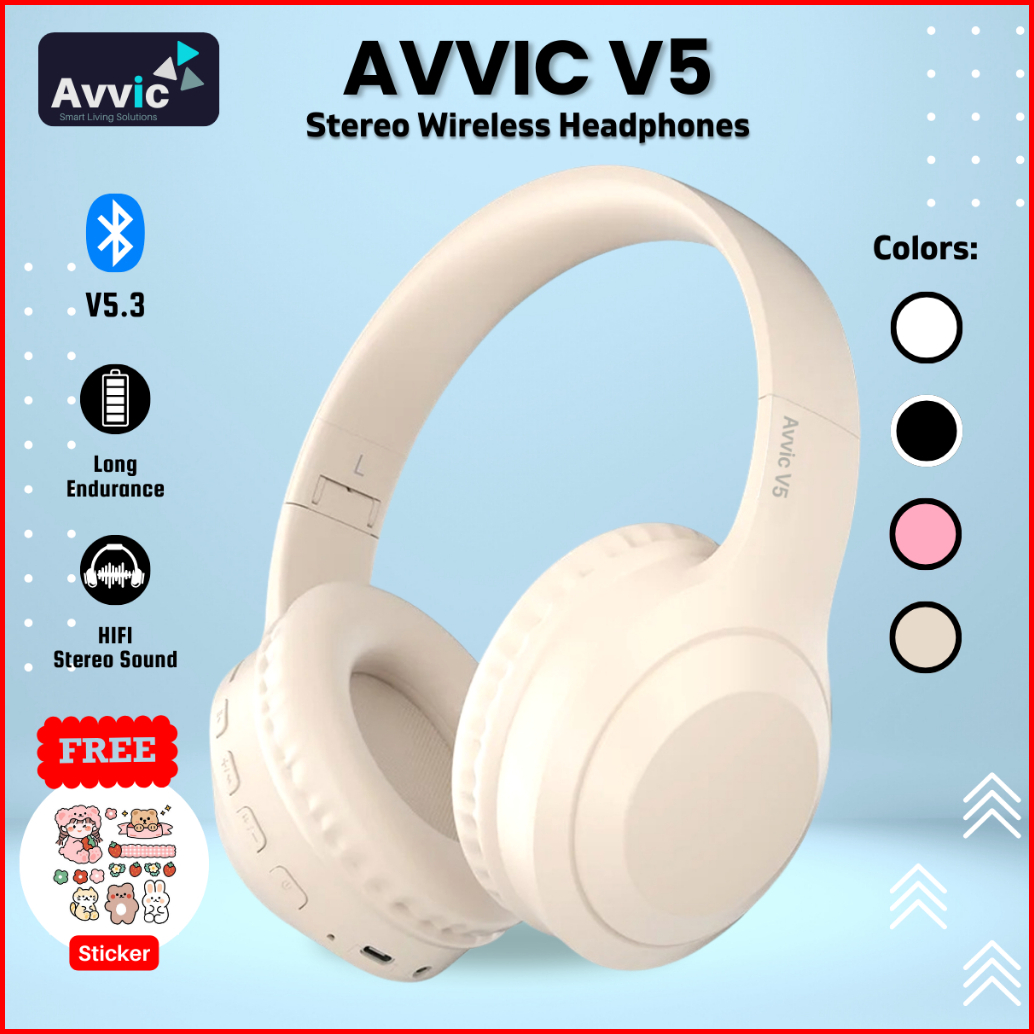 Avvic V5 Wireless Headphone Bluetooth Headset Stereo Hifi Bass Hd Sound Music Earphone