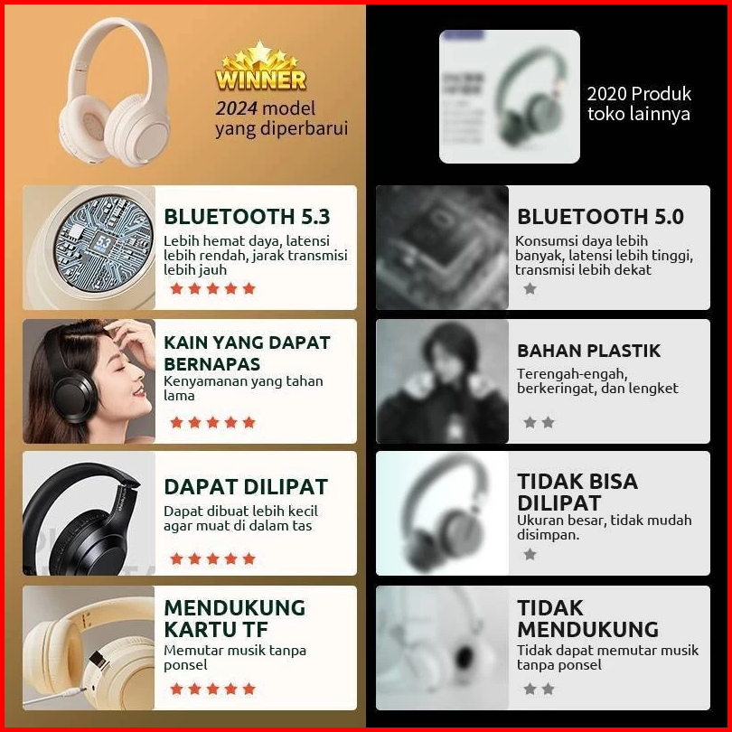 100 Originalm6 Bluetooth Headphone Wireless Headset V5.3 Hifi Dual Mode Stereo Bass Noise Proof Music Gaming Headset Wit