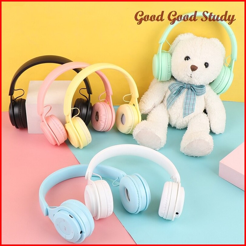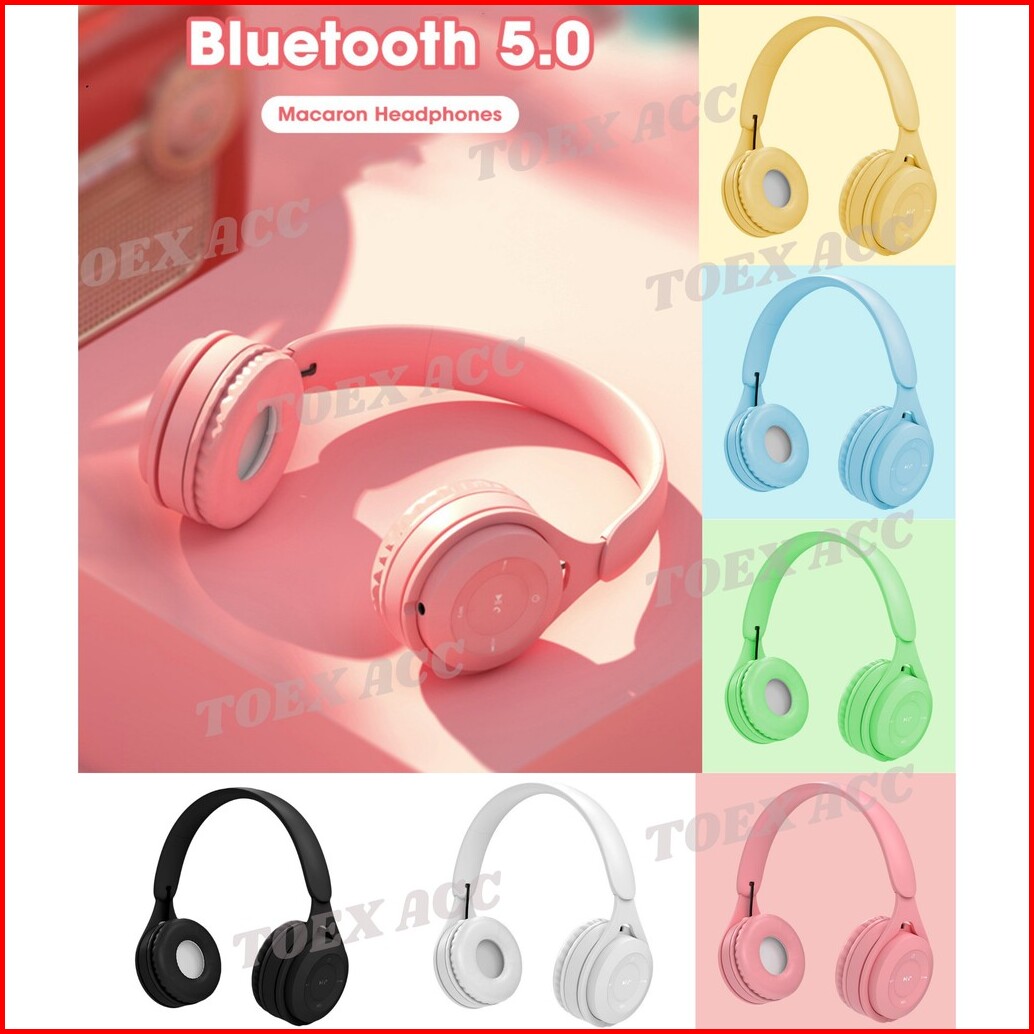 Headphone Gaming Bluetooth Free Kabel Jack 3.5mm - Headset Wireless Macaron Extra Bass
