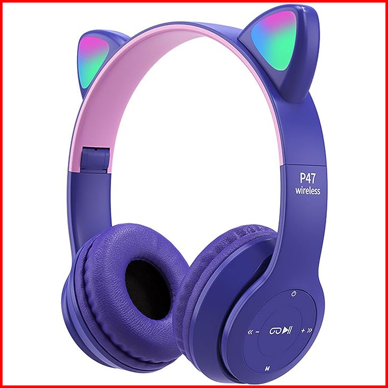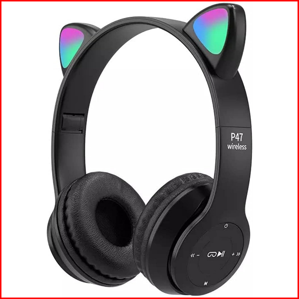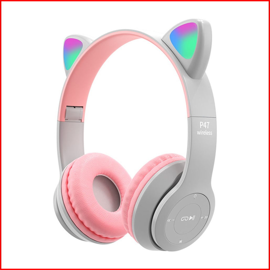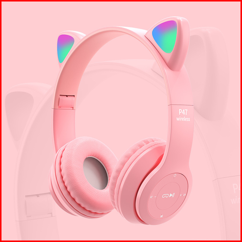 Headphone Wireless Bluetooth Led Cat Ears P47 M Headset Bando Kucing