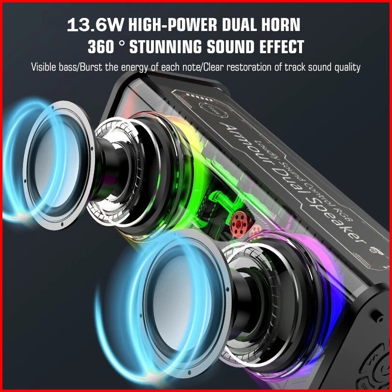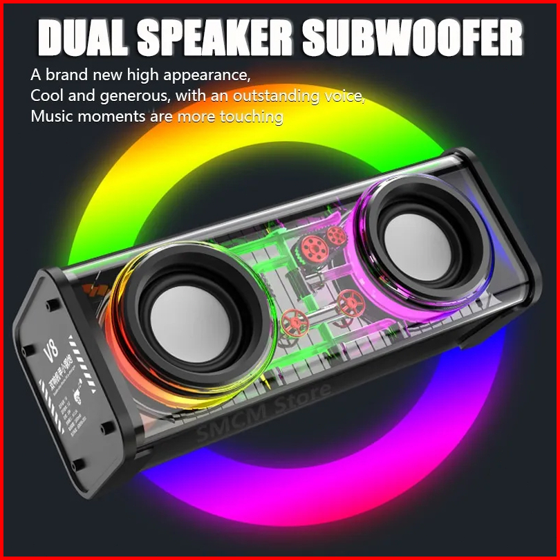 Mecha Speaker Bluetooth Subwoofer Baja Kecil Transparan Audio Portabel Nirkabel Rgb 7 Color Light V8 Speaker Bluetooth T