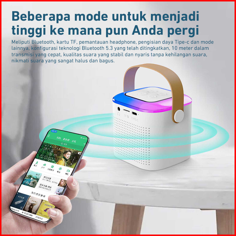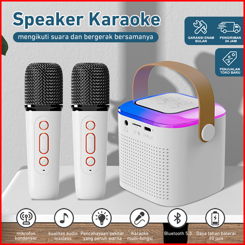 Speaker Bluetooth 2mic 1 Set Karaoke Speaker Ktv Cute Wireless Lucu Portabel Luar Ruangan Speaker Nirkabel Mic Bass Supe
