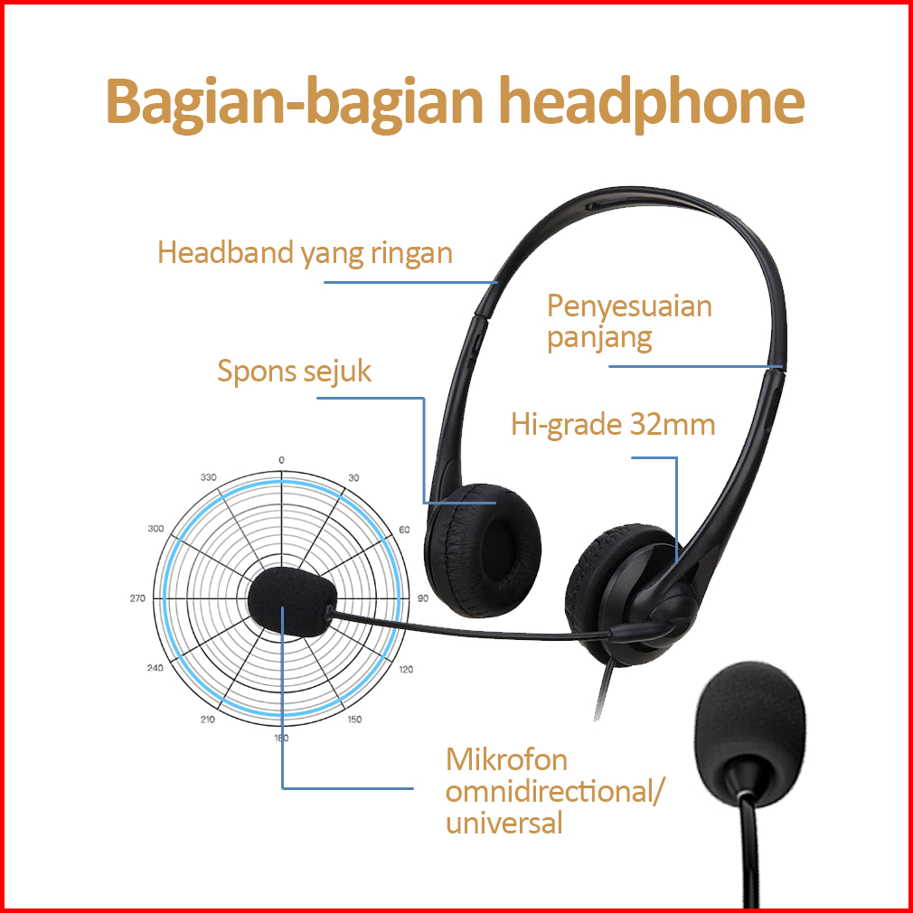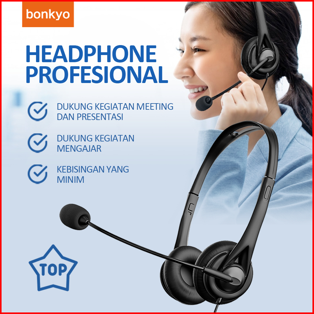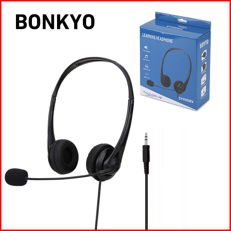 Bonkyo Headphone Stereo Dengan Mikrofon Dan Single Jack 3.5mm Cocok Untuk Pembelajaran Di Kantor