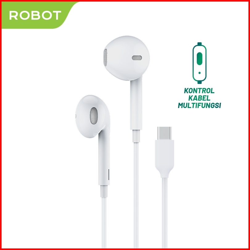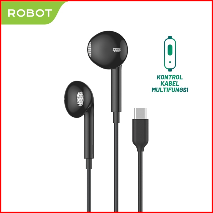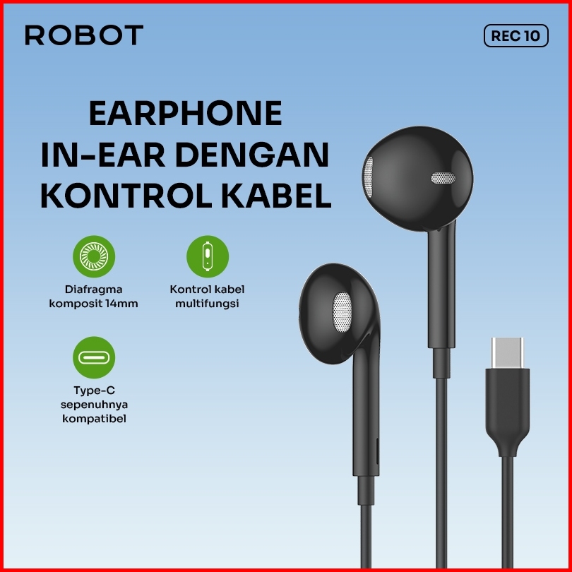 Robot Wired Earphone In-ear Rec 10 Kabel Type C Dengan Kontrol Kabel Multifungsi Original - Garansi 1 Tahun