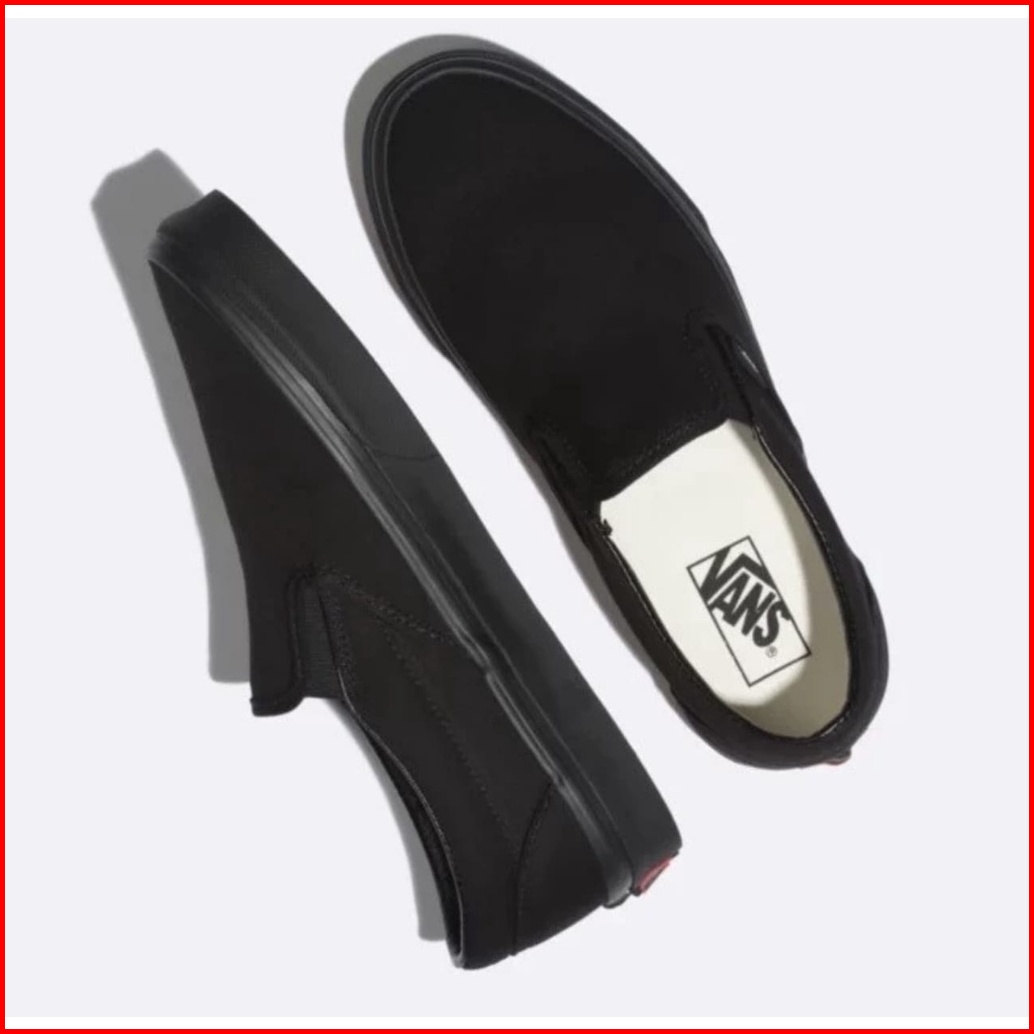 Terlaris Vans Slip On Full Black Sneakers Pria Wanita